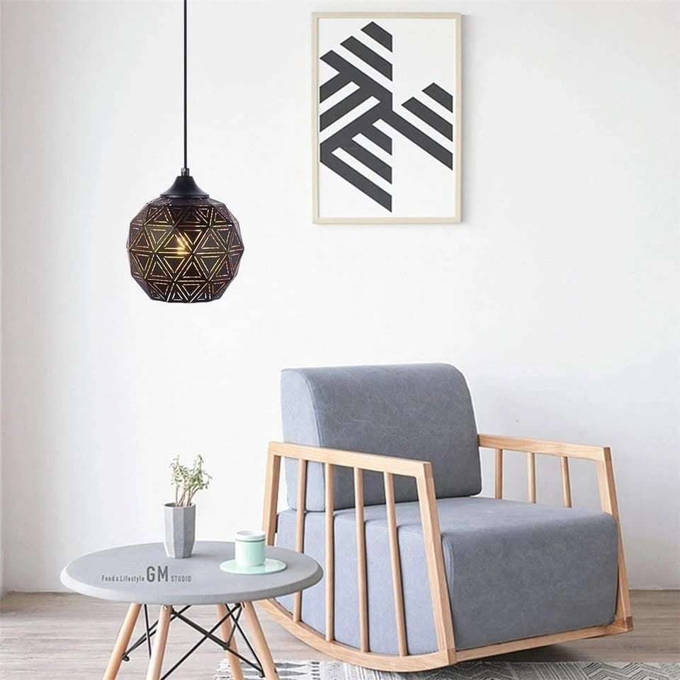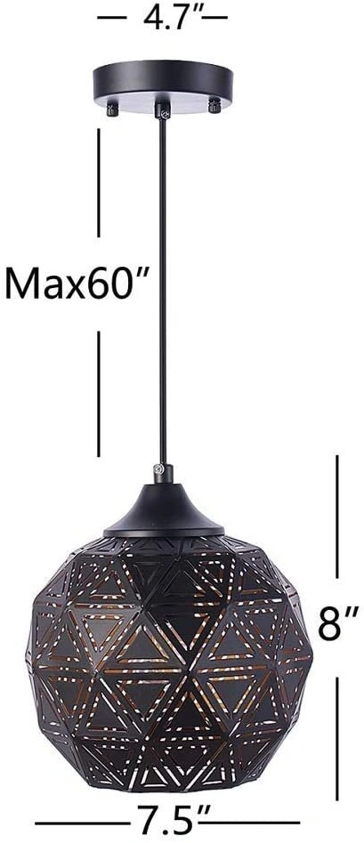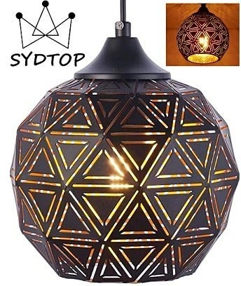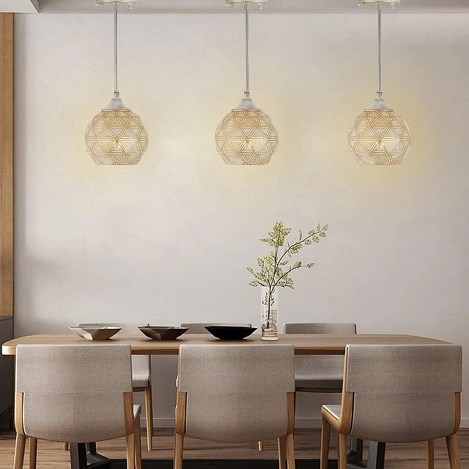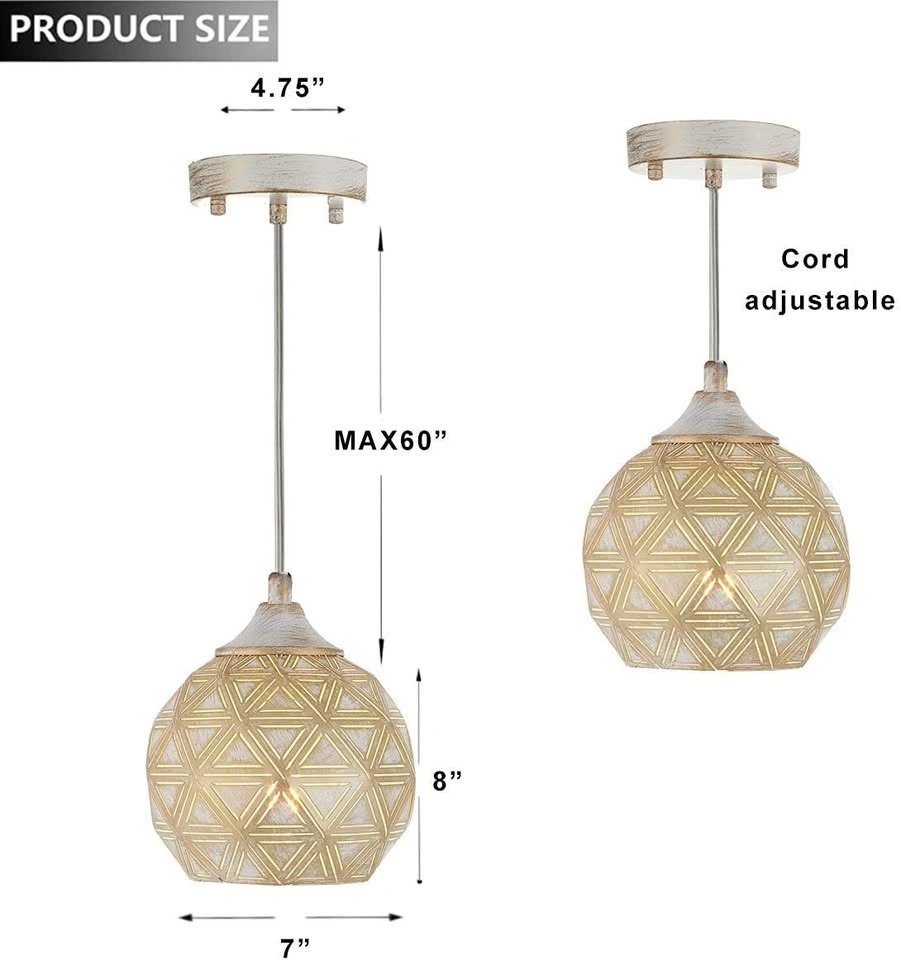 NEW! Beautiful Pendant Light with Handcrafted Metal Geometric Shape Contemporary 1-Light Rustic Pendant Lighting Fixture for Kitchen Island Dining Room Sink Bar Counter Loft. Available in Matte Black&Gold or White&Gold.
