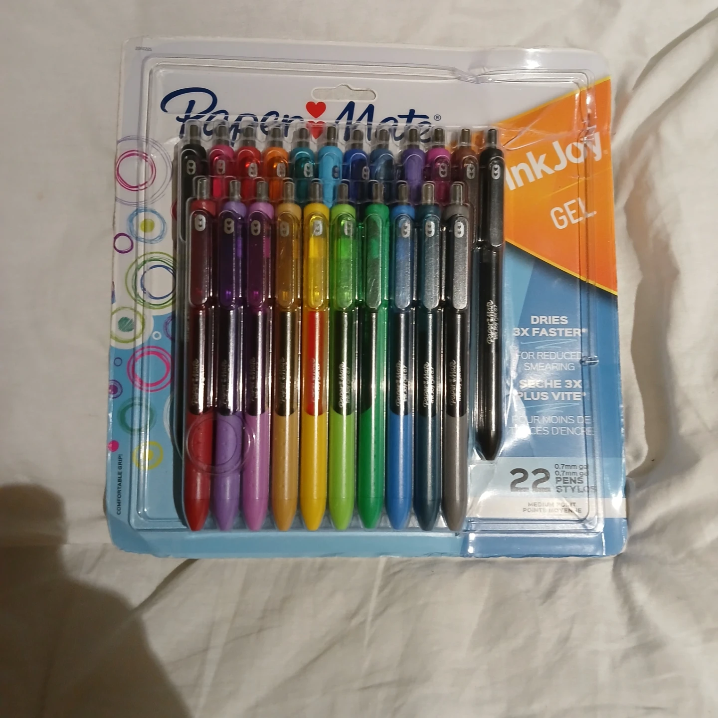 Selling a pack of Paper Mate InkJoy Gel pens! This pack comes with 22 pens in a variety of colours. They dry 3x faster for reduced smearing, so they're great for taking notes or just doodling!