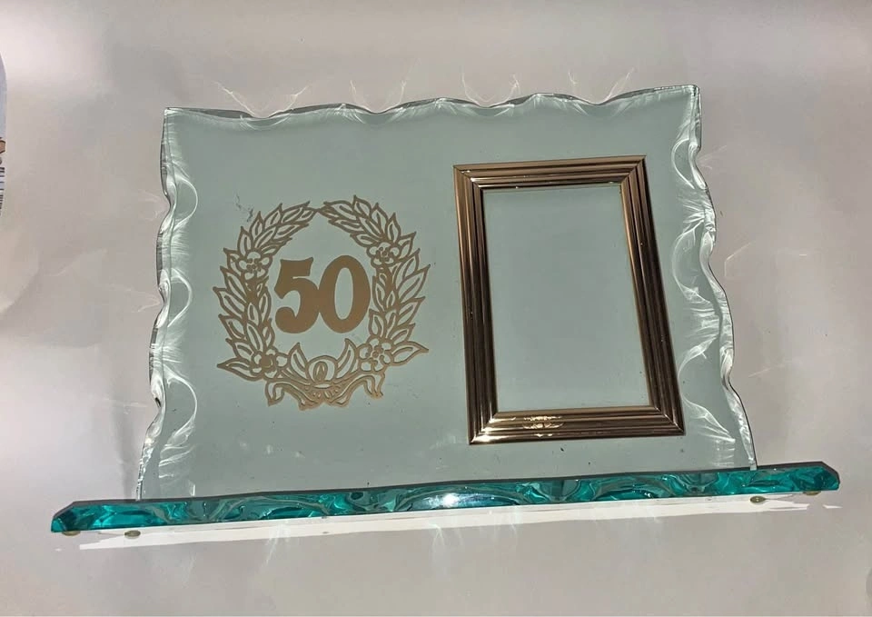 Base is 16in long, 4in wide. Frame is 10.5in high. Glass is approx 1/2 inch thick.