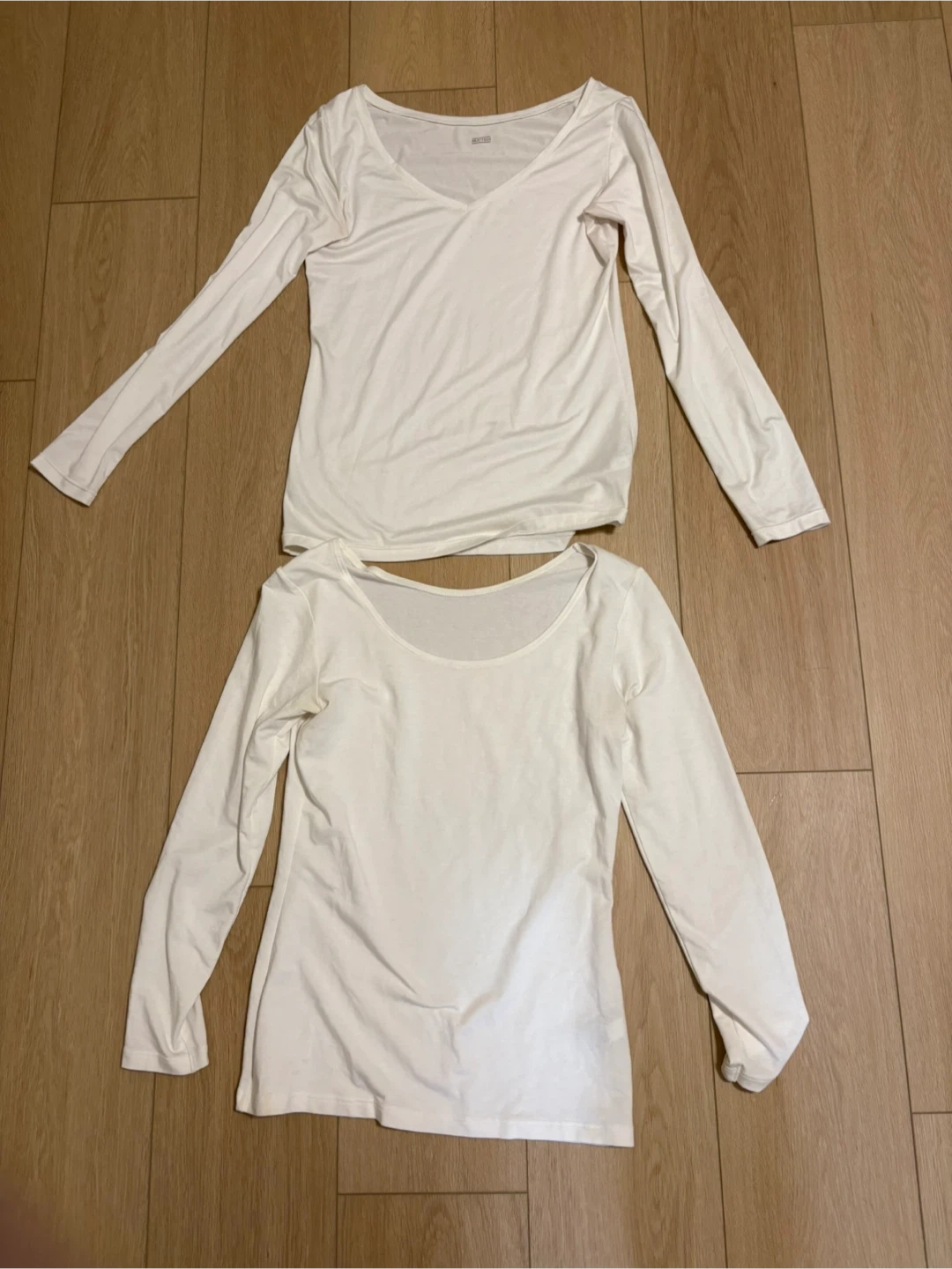 Selling two white long-sleeve shirts from Uniqlo and heat tech.