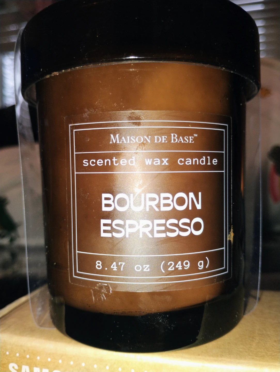 Selling a Maison De Base scented wax candle in the Bourbon Espresso scent. It's 8.47 oz (249 g)