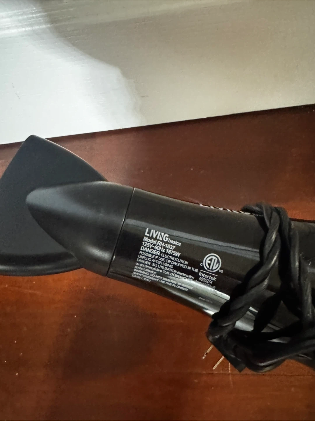 Selling a Living Basics hair dryer! It's in good condition and ready to use. This model is RH-1879 and uses 120V~60Hz at 1875W. It's a great basic hair dryer for everyday use