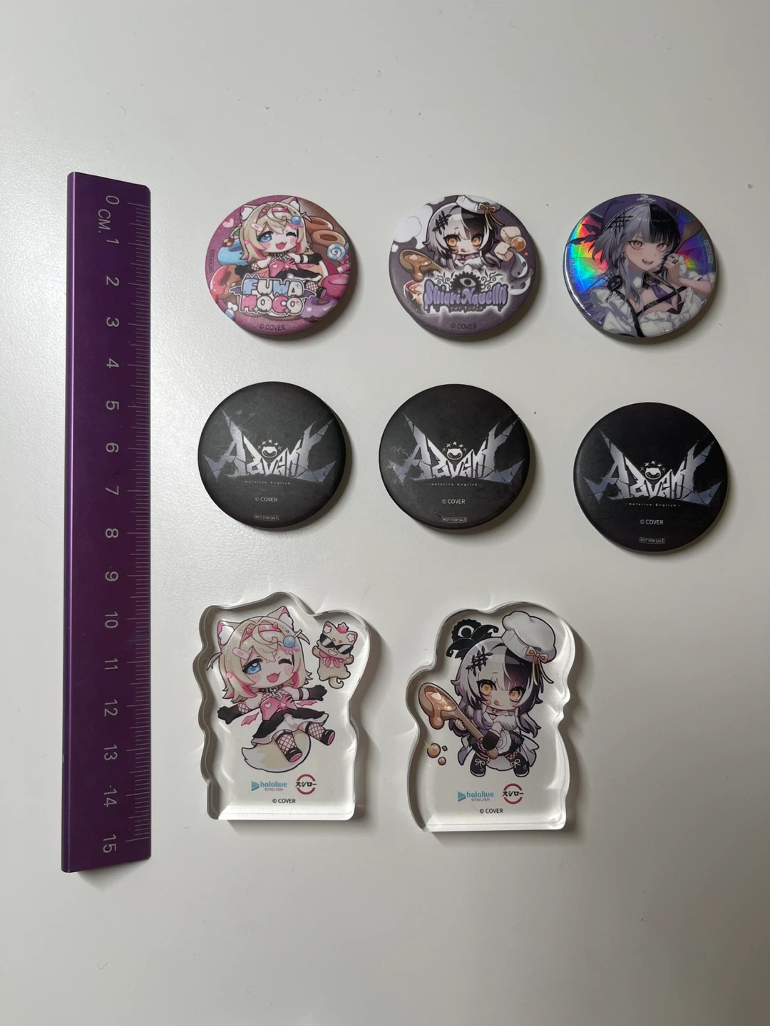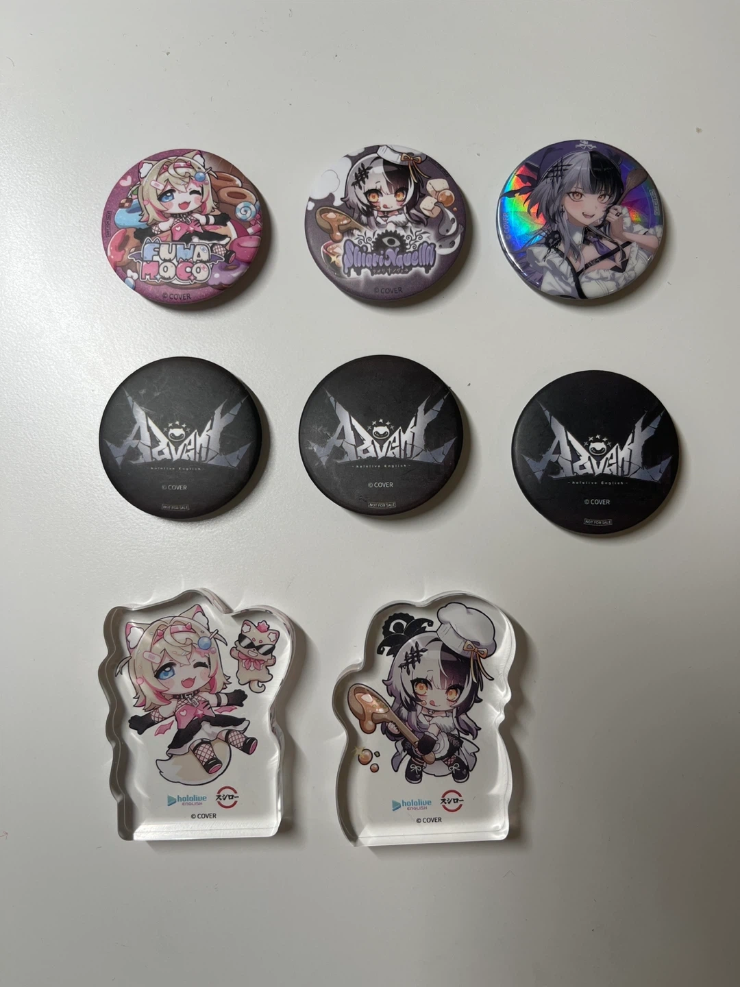 Hololive advent fuwamoco shiori badges standee authentic item