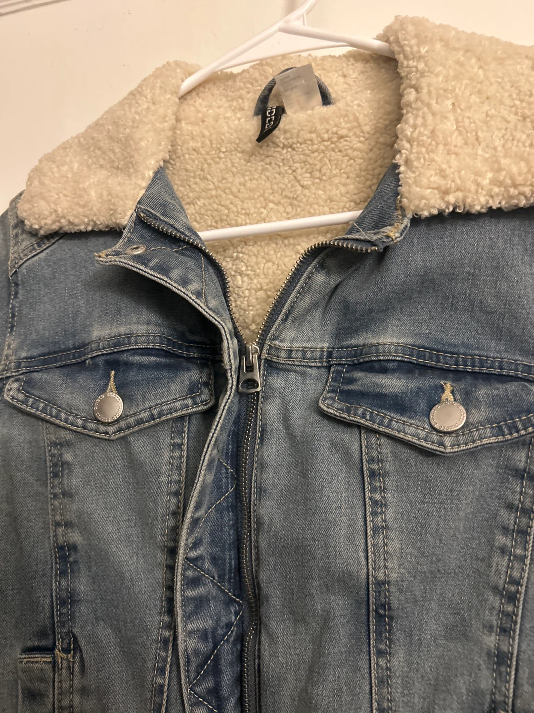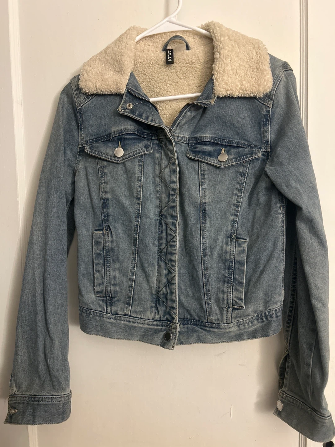 Selling a cute denim jacket from H&M's Divided line! It has a cozy sherpa lining that's perfect for cooler weather. The size is US 6. It's in great condition!