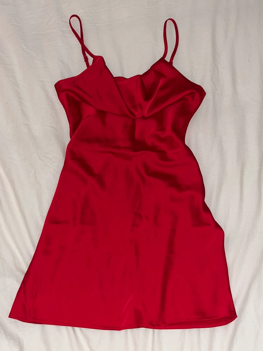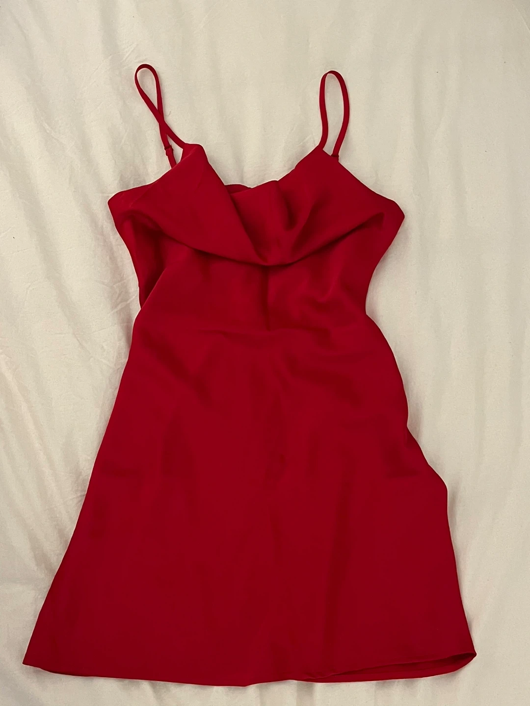 Selling a cute red mini dress from Urban Outfitters! It's in good condition and perfect for a night out or special occasion. The dress has a flattering silhouette and is made of a smooth, comfortable material. Feel free to ask any questions!