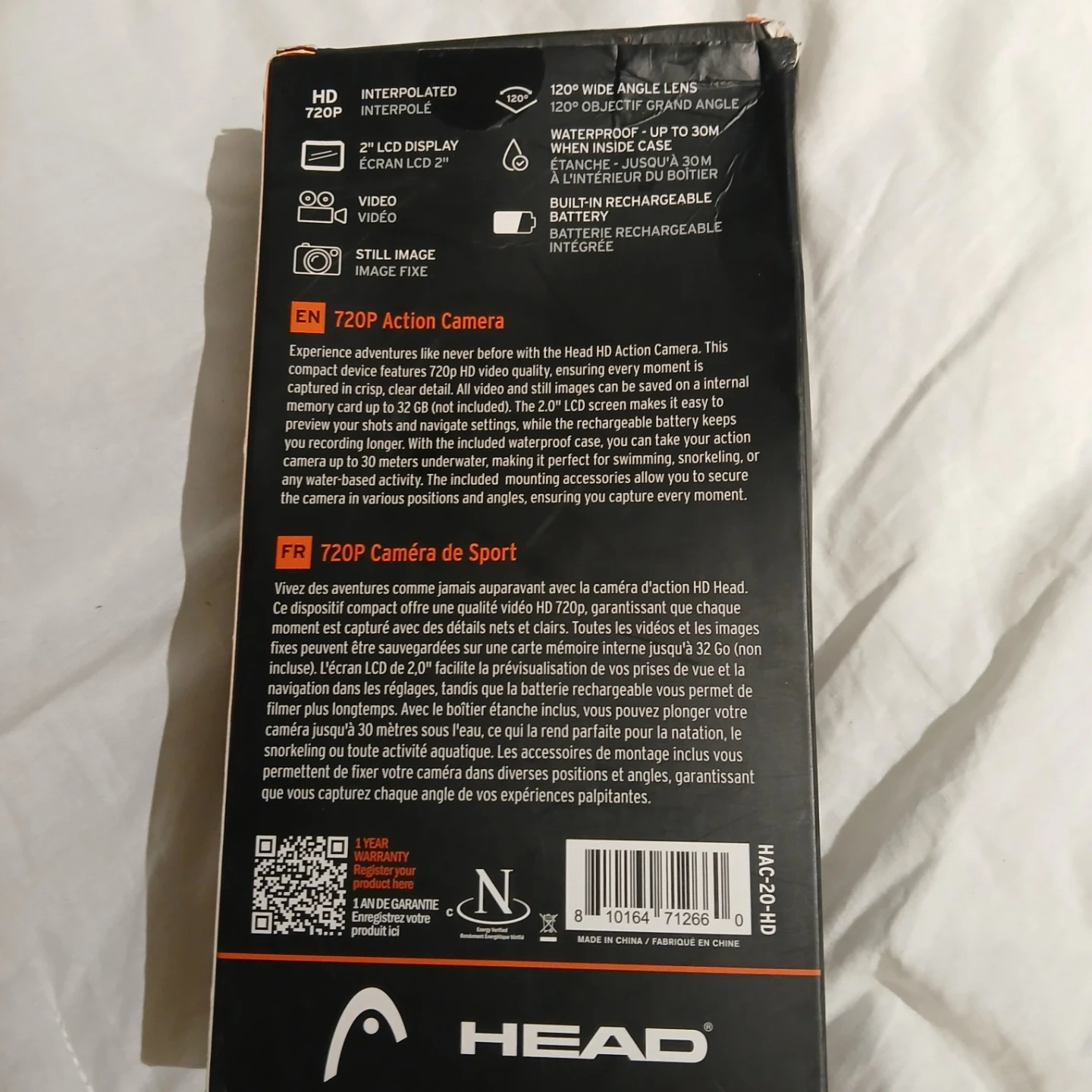 Selling a brand new HEAD 720P Action Camera still in its original packaging! This compact device features 720p HD video quality, ensuring every moment is captured with details and clarity.