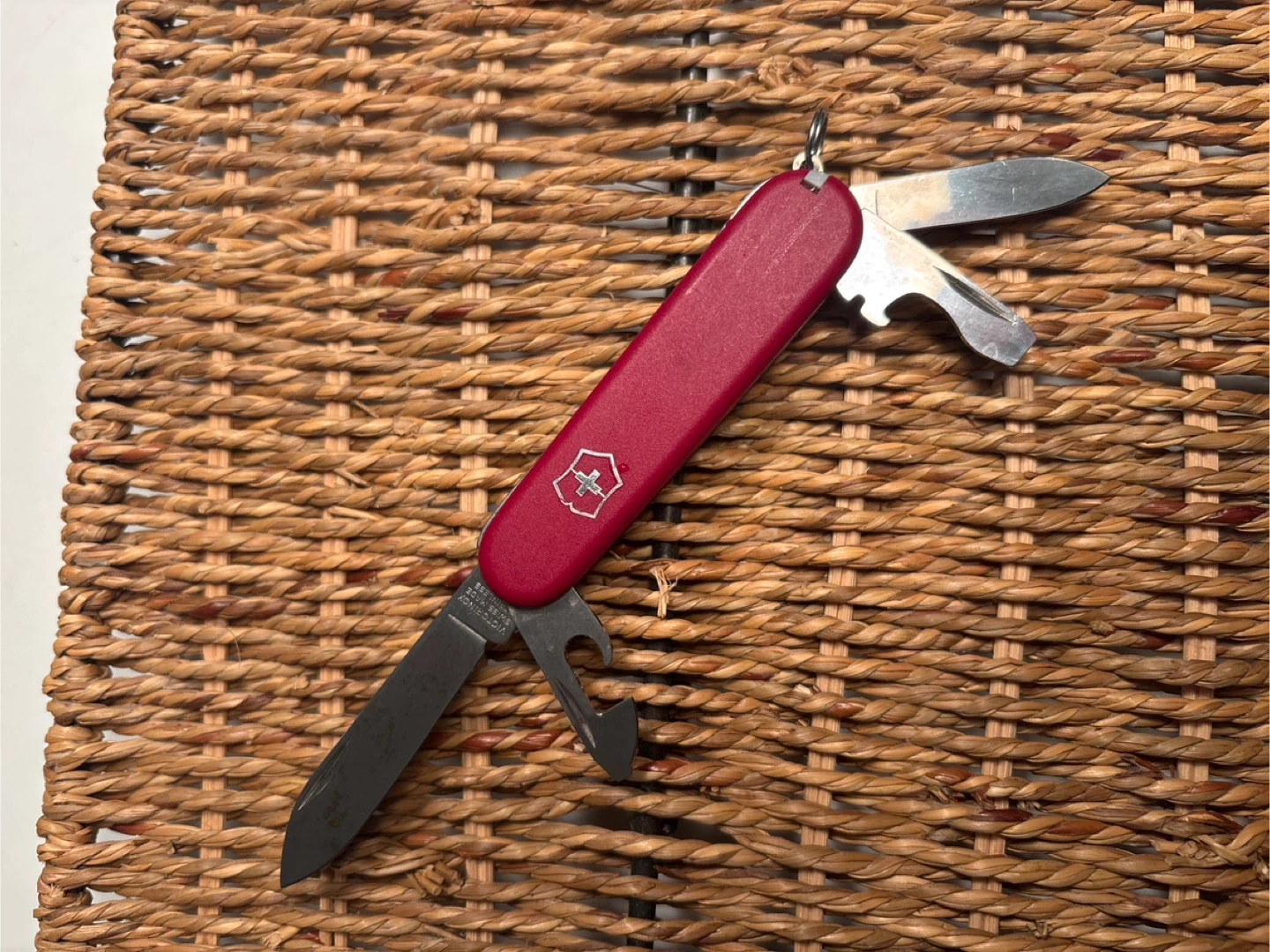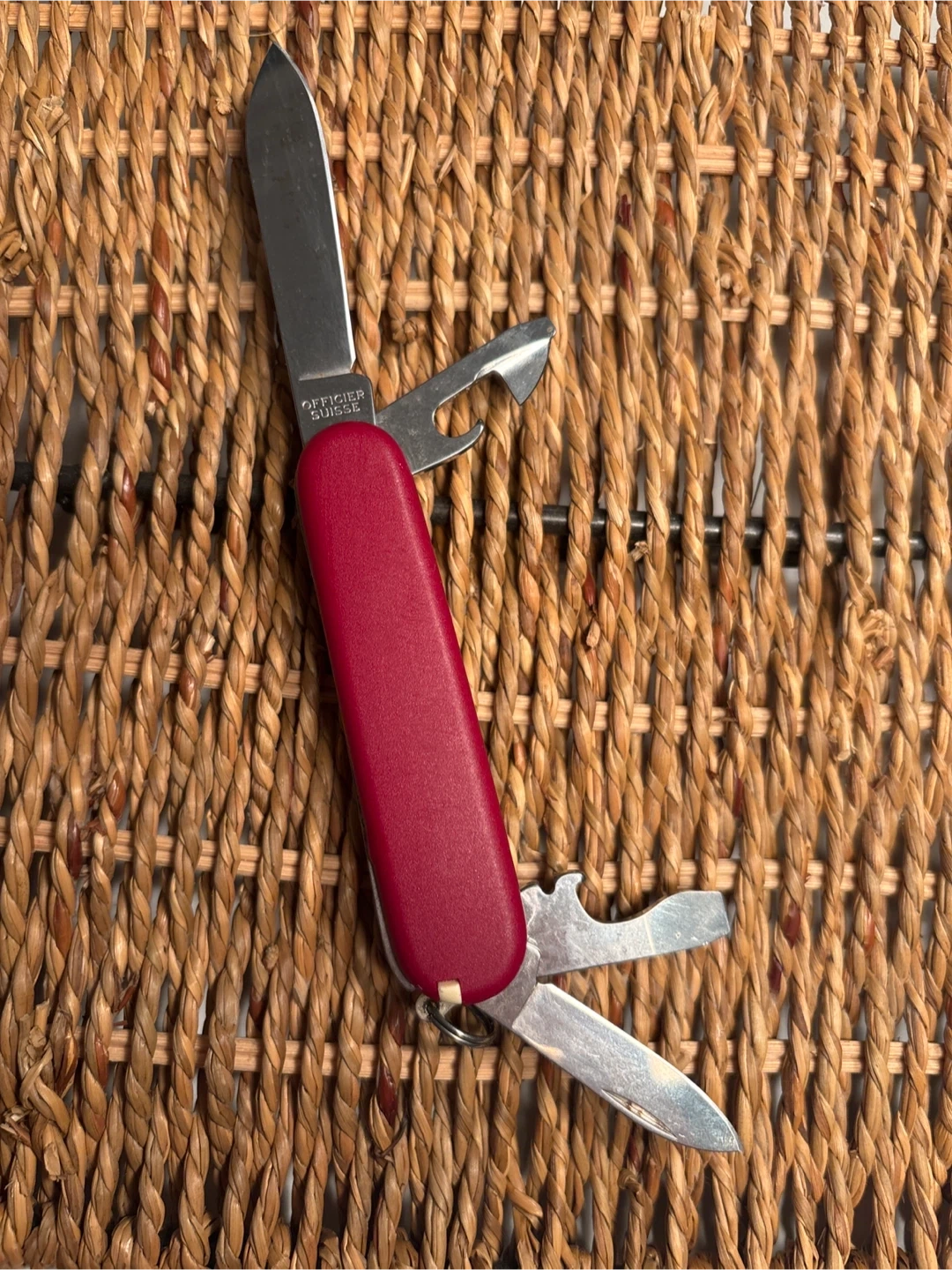 Selling a Victorinox Swiss Army knife. It's in great condition and ready for your next adventure! It features several useful tools including a blade, bottle opener, and more. Perfect for camping, hiking, or everyday use
