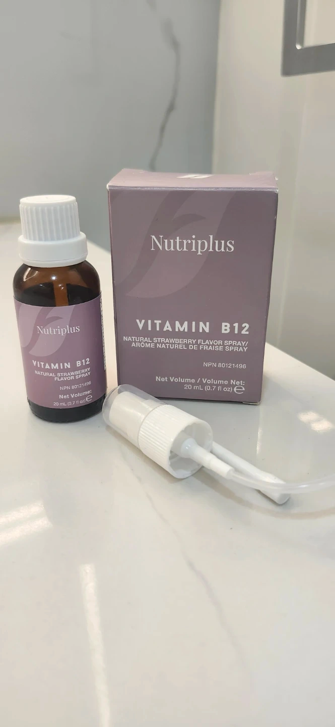 Selling a Nutriplus Vitamin B12 Natural Strawberry Flavor Spray. It helps to support the immune system.