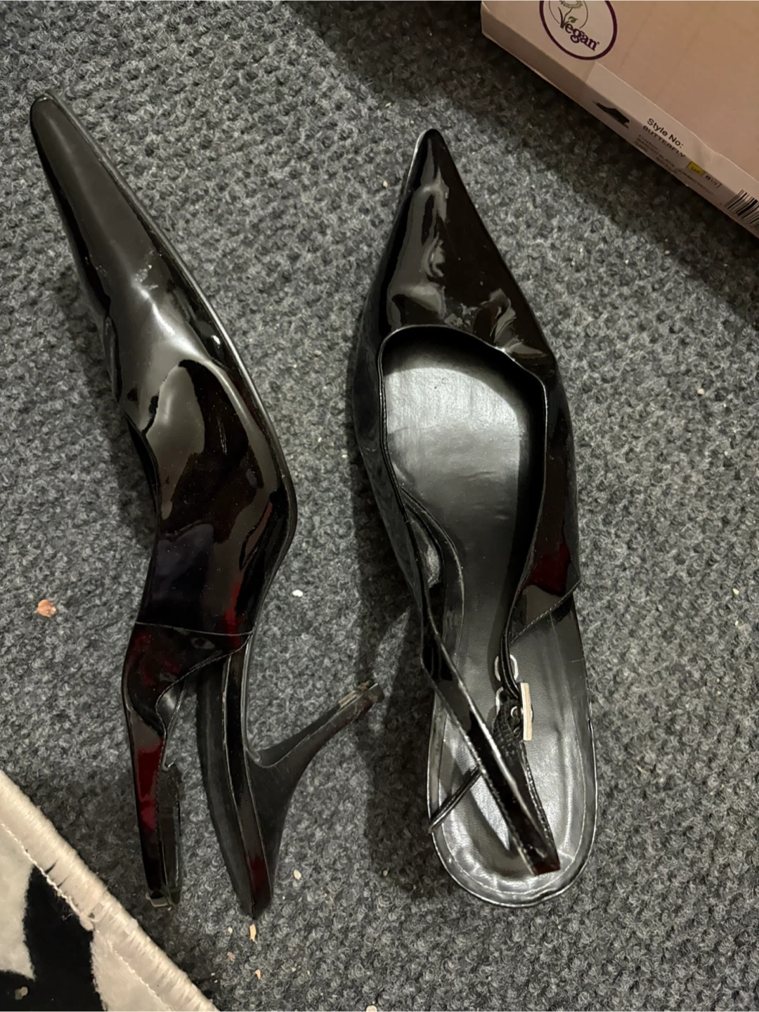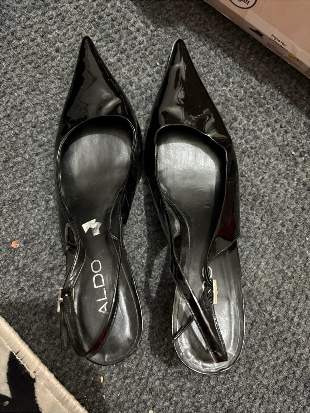 Selling a pair of ALDO black patent leather heels in size 7. They show some signs of wear, but still have lots of life left in them! Perfect for dressing up or a night out