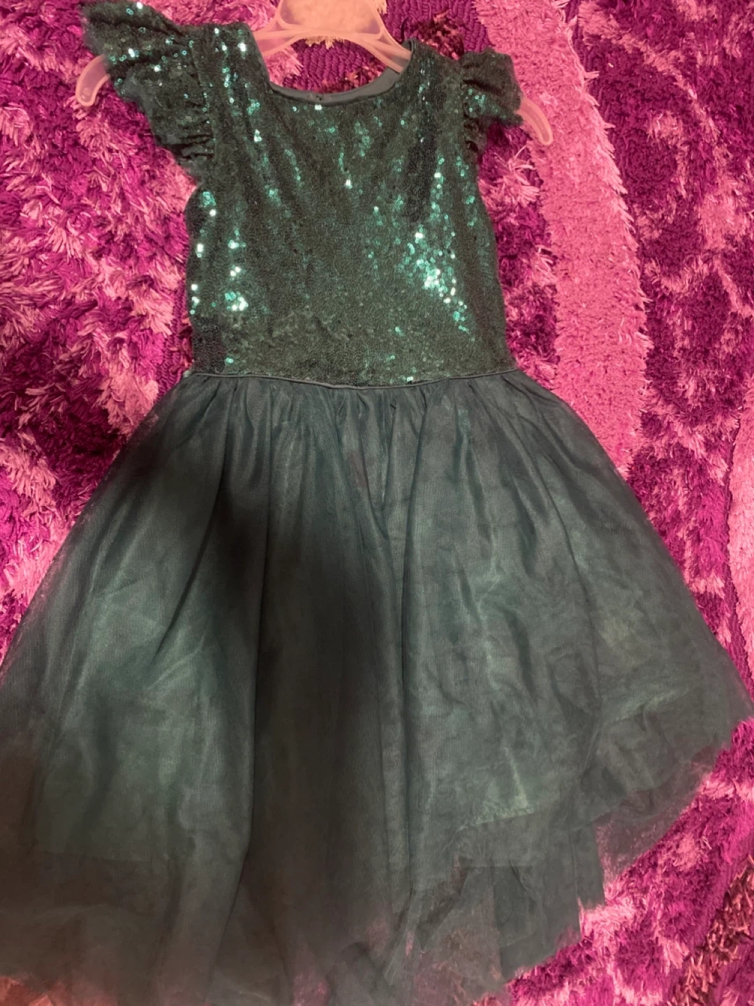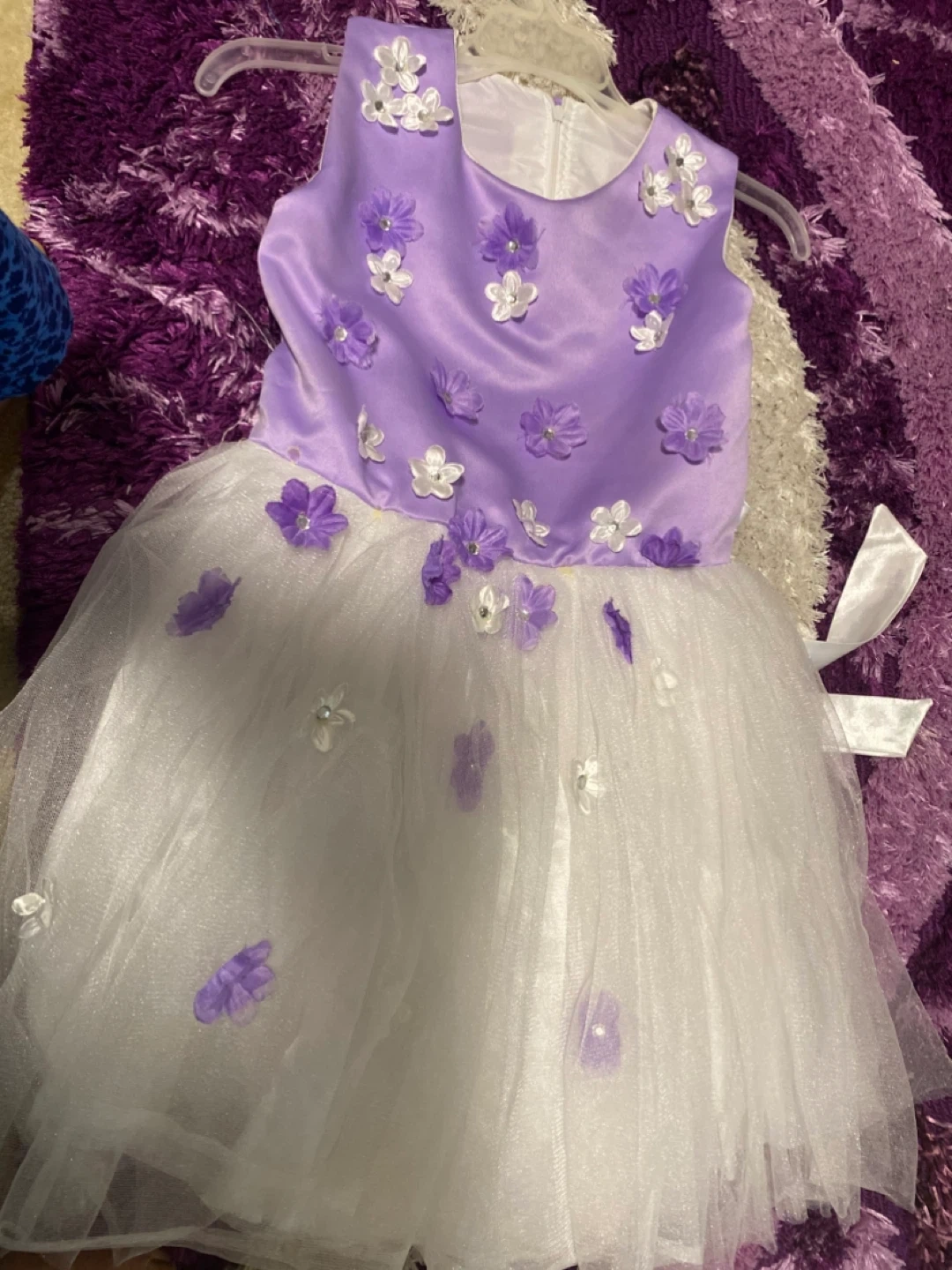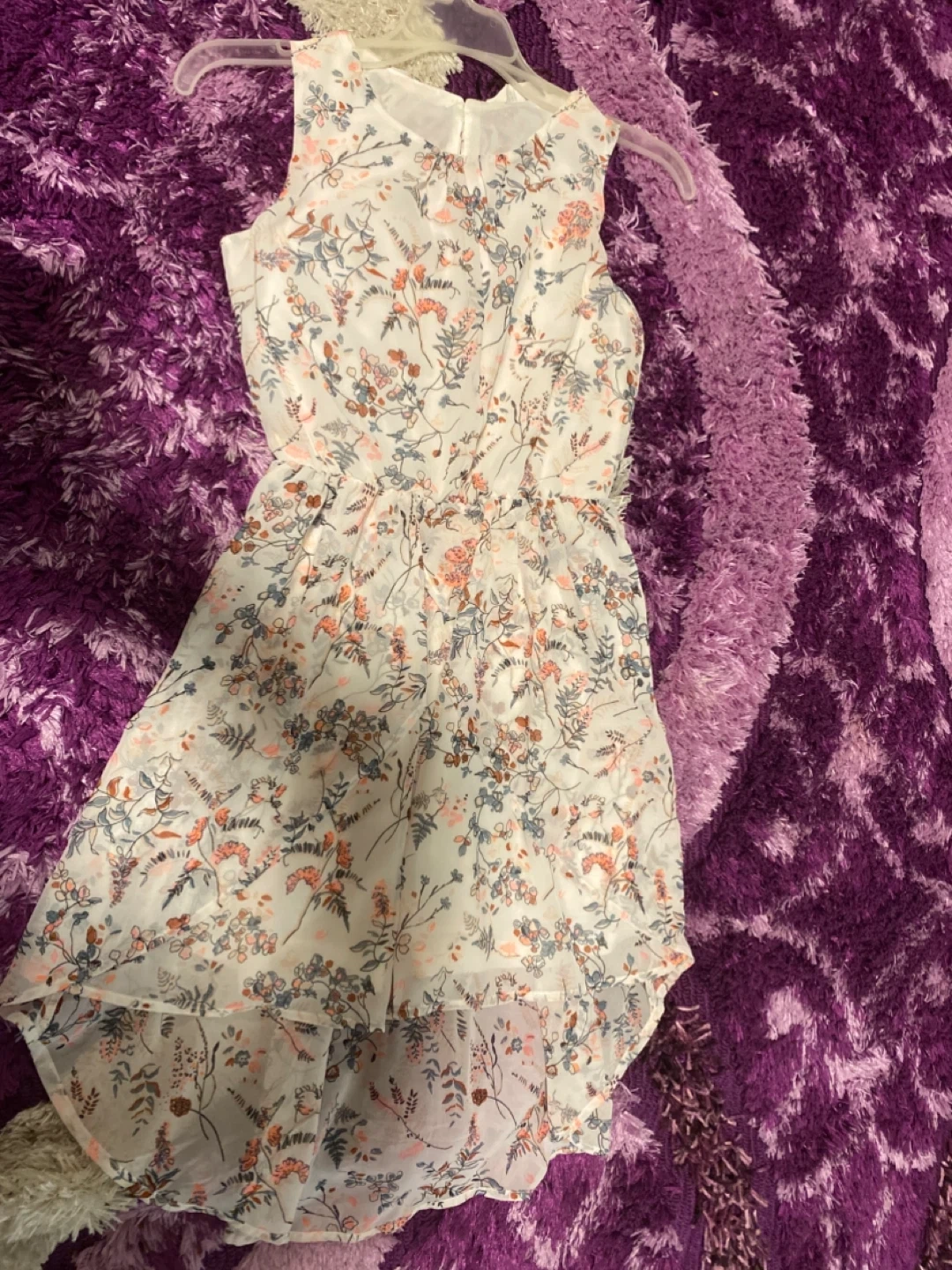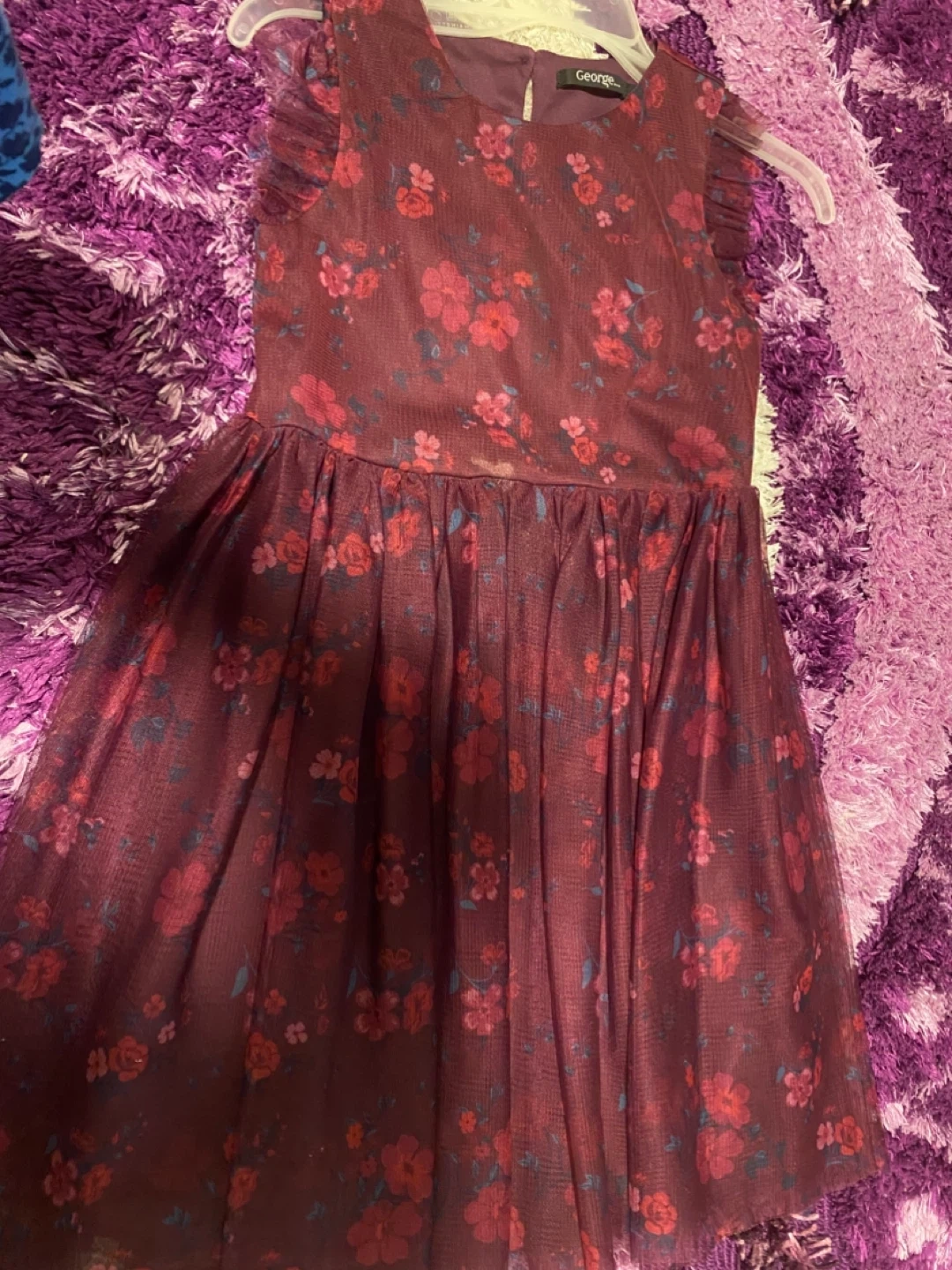 Selling a bundle of girls' dresses and overalls. Includes a sequin dress, a floral dress from George, denim overalls, denim pants, and a white floral dress. All items are in good condition and ready for a new home!