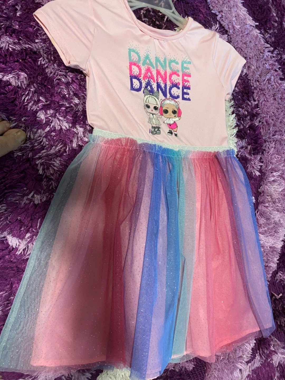 Selling a bundle of girls' dresses and overalls. Includes a sequin dress, a floral dress from George, denim overalls, denim pants, and a white floral dress. All items are in good condition and ready for a new home!