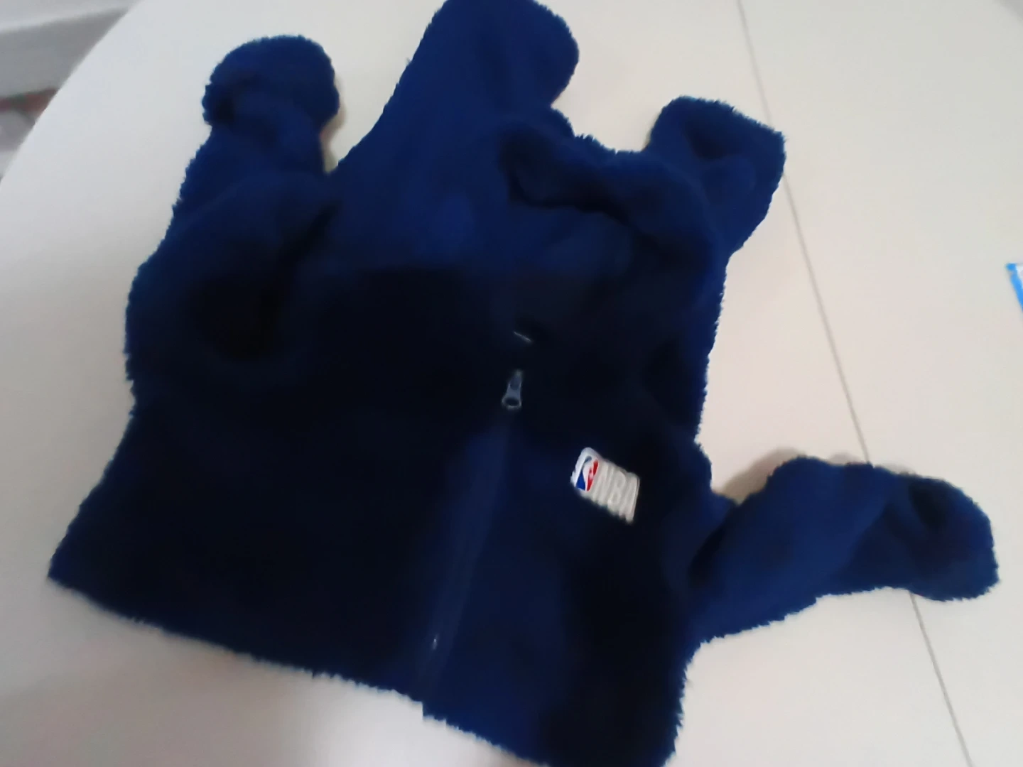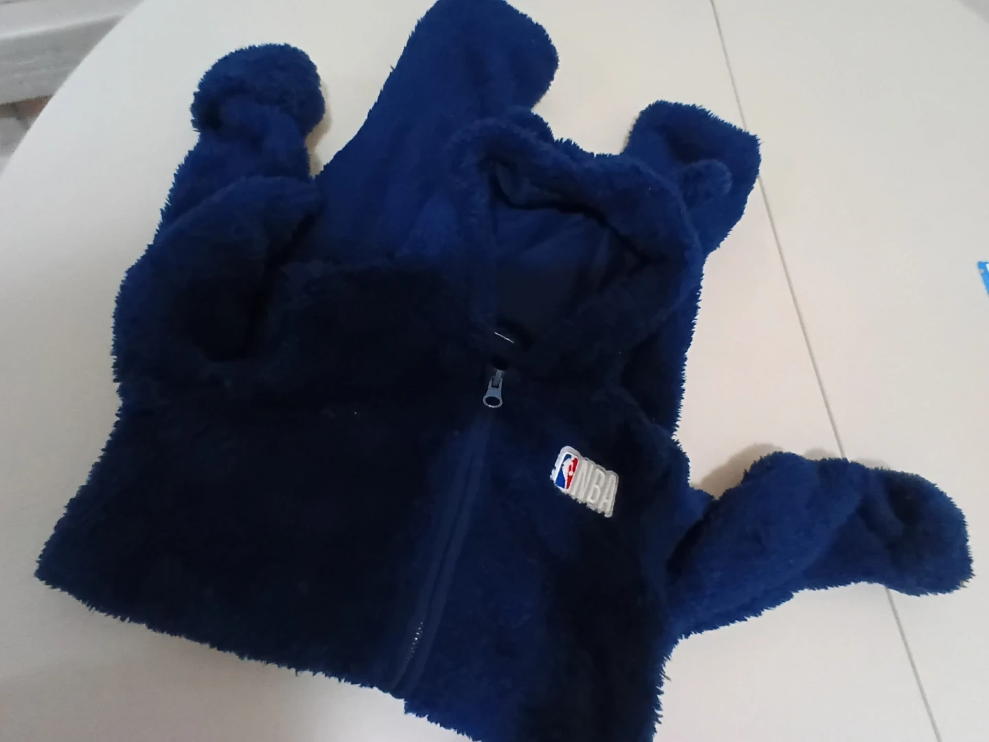 Selling a cozy NBA fleece onesie in a beautiful blue color! It's perfect for keeping your little one warm and snug. The onesie features a hood with adorable bear ears and a convenient zipper closure. Size is 12 months. Great for any young basketball fan!
