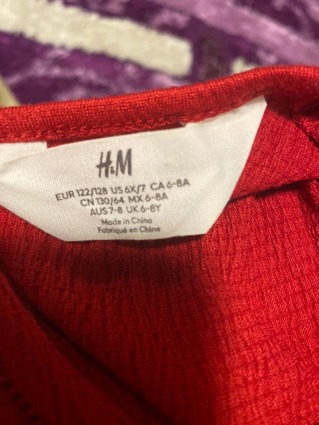 Selling a cute red dress from H&M! The size is 6X/7, which fits kids around 6-8 years old. It's in great condition and ready for a new owner!