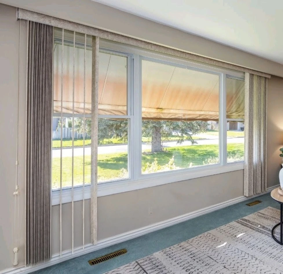10ft wide x 7ft tall - beige colour All hardware and valence is included. Smoke, pet free home. Fully functional, just decided to replace with something else. Pick up only.