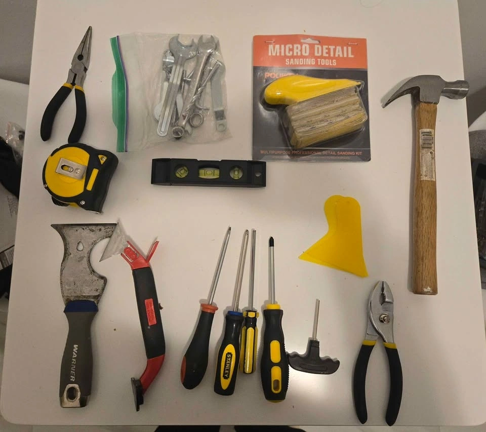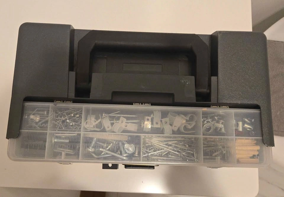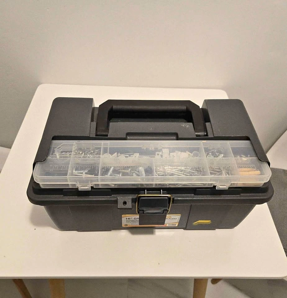 Selling a fully stocked toolbox with everything you need for home repairs. Includes: hammer, pliers, screwdrivers, wrenches, tape measure, scrapers, levels, sanding tools, and a large variety of screws, nails, anchors, and hardware.