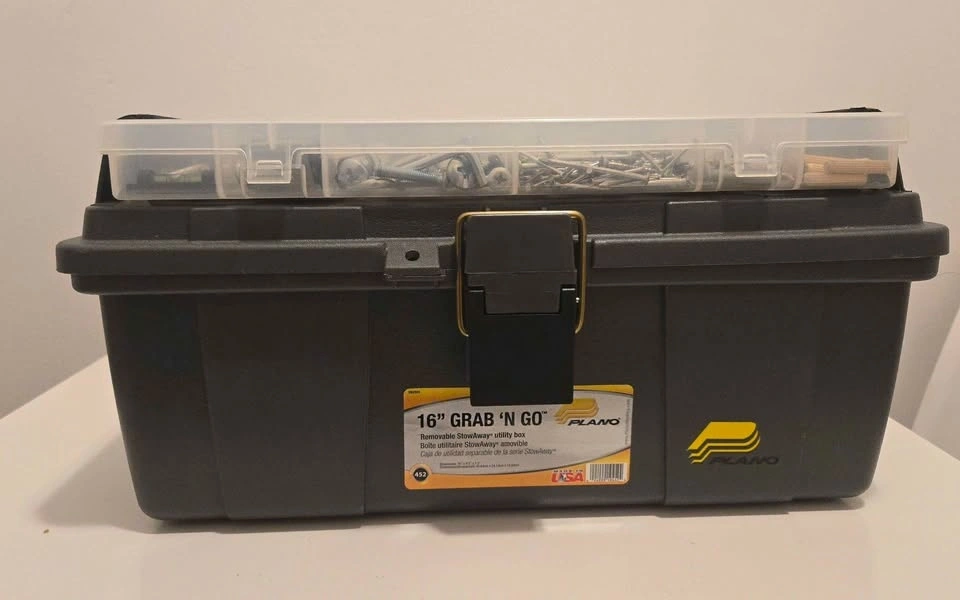 Comes with a sturdy Plano Grab ’N Go toolbox with top organizer.