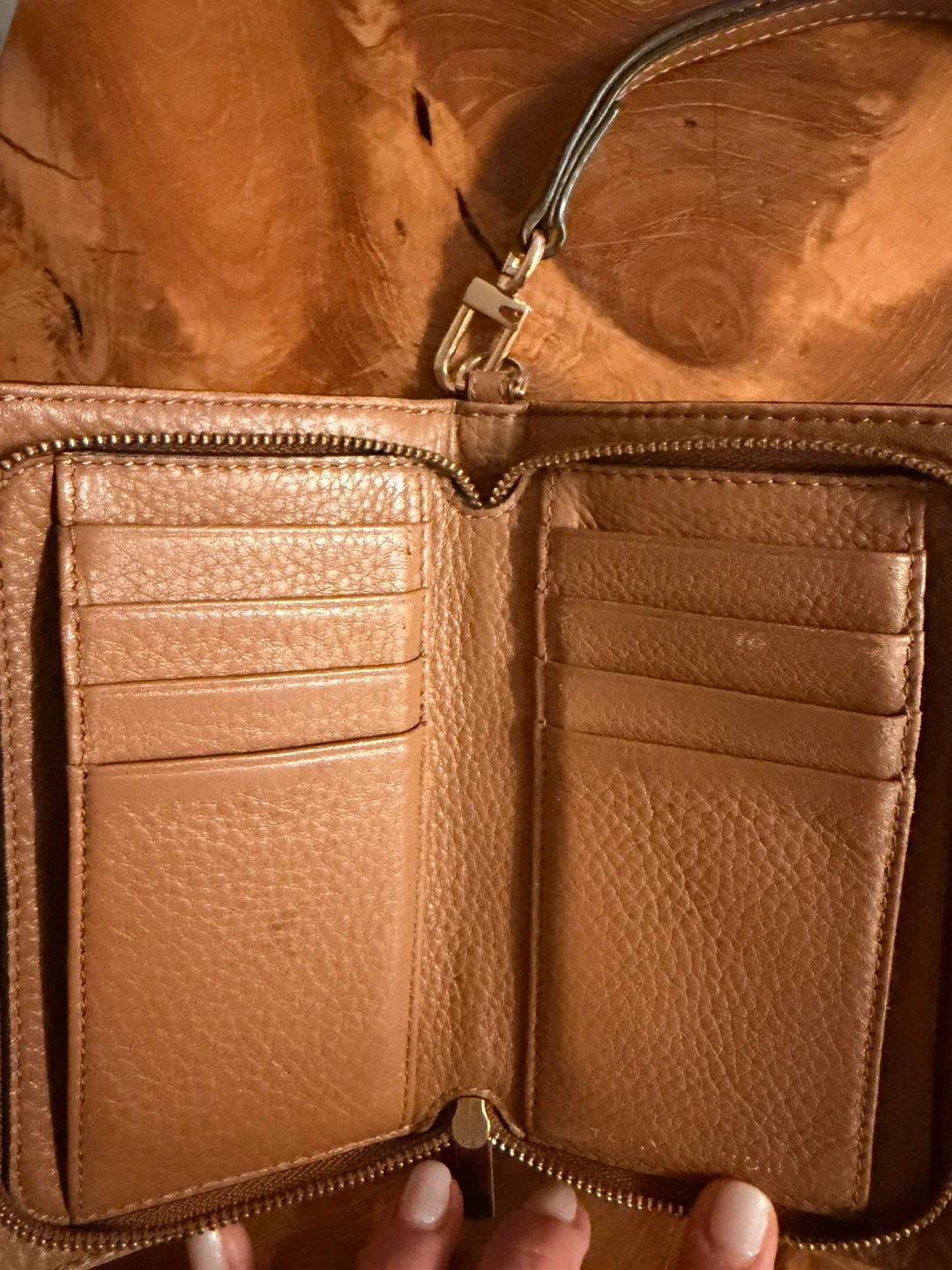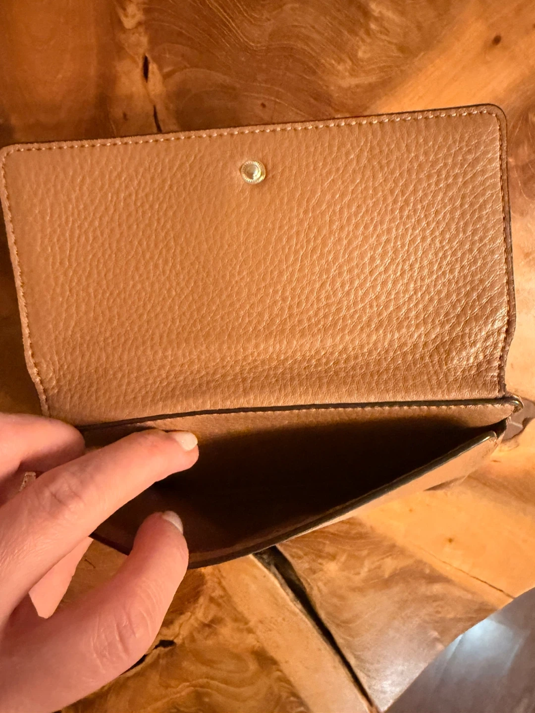 Selling a well-loved Tory Burch wallet! It's a lovely tan colour and has lots of space for cards and cash. Perfect for everyday use and still in great shape!