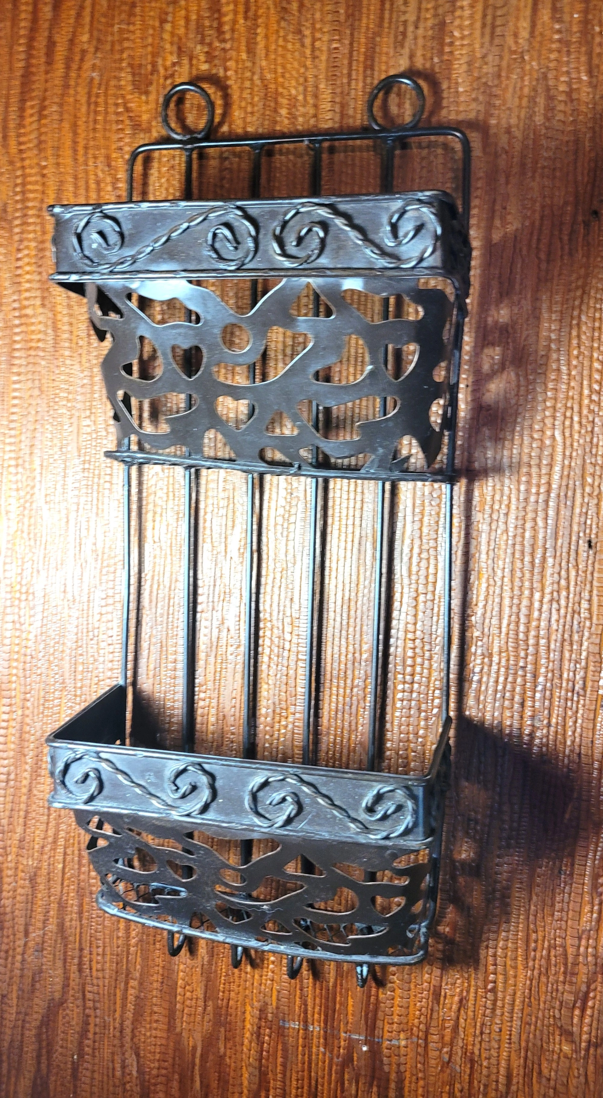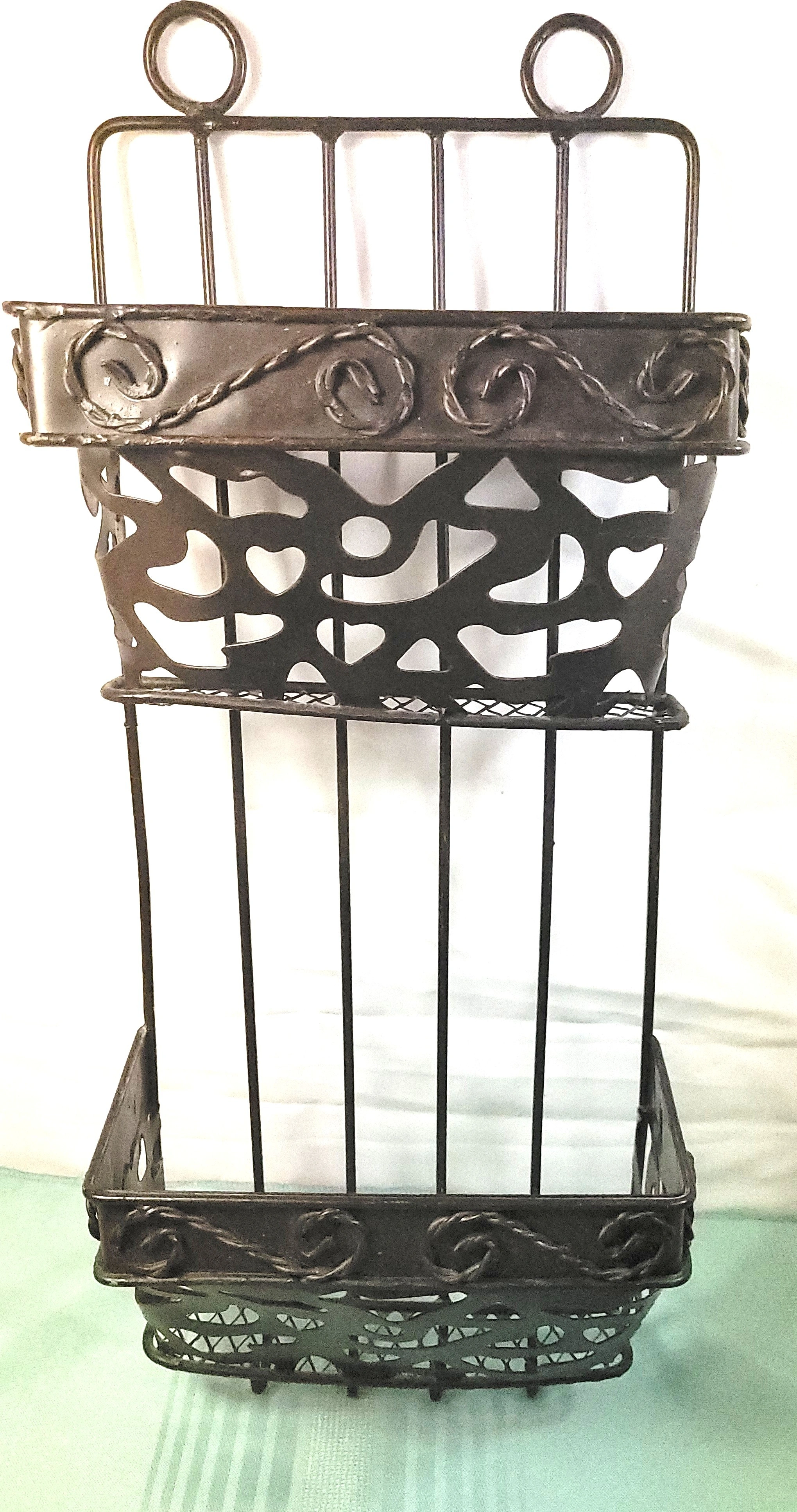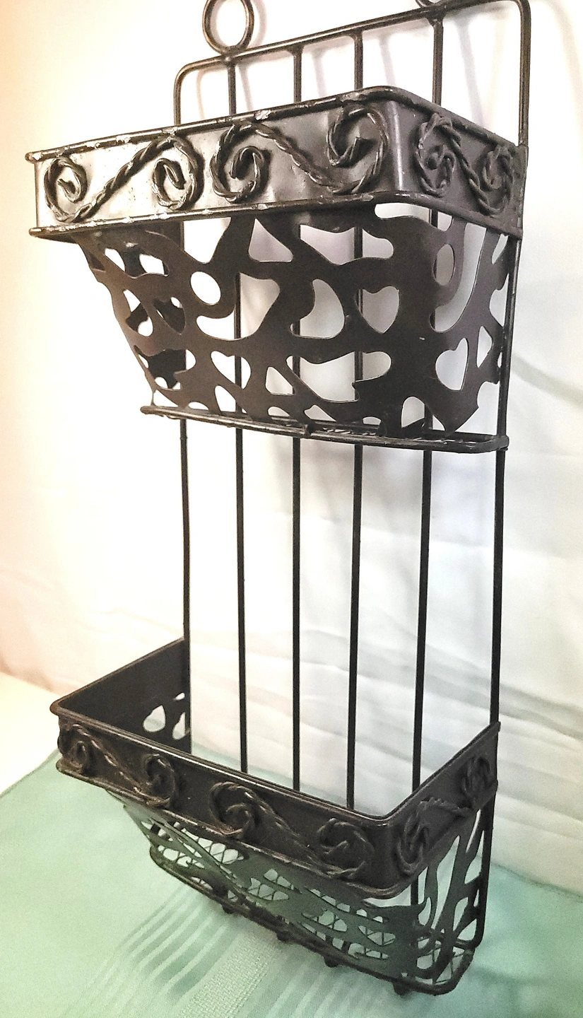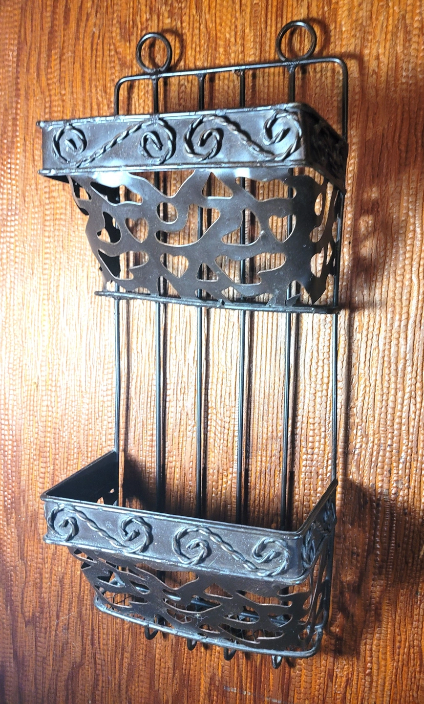 Authentic Vintage Design: Elevate your entryway or home office with this original 1970s-era wrought iron mail sorter. This piece features a classic Spanish-style scrollwork (filigree) design that fits perfectly with Farmhouse, Gothic, or Rustic decor styles. It is a heavy, durable piece designed for both function and aesthetic appeal.