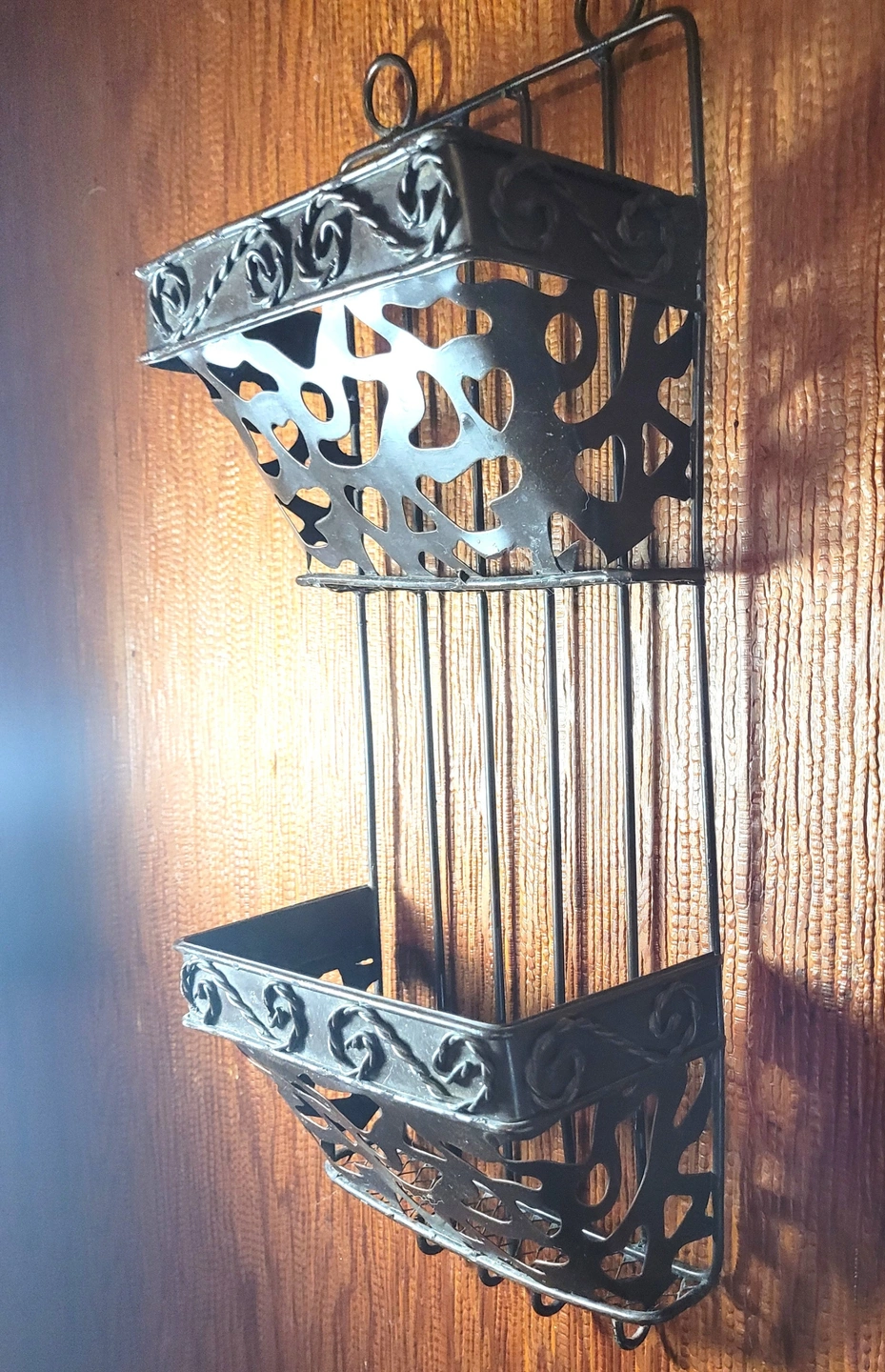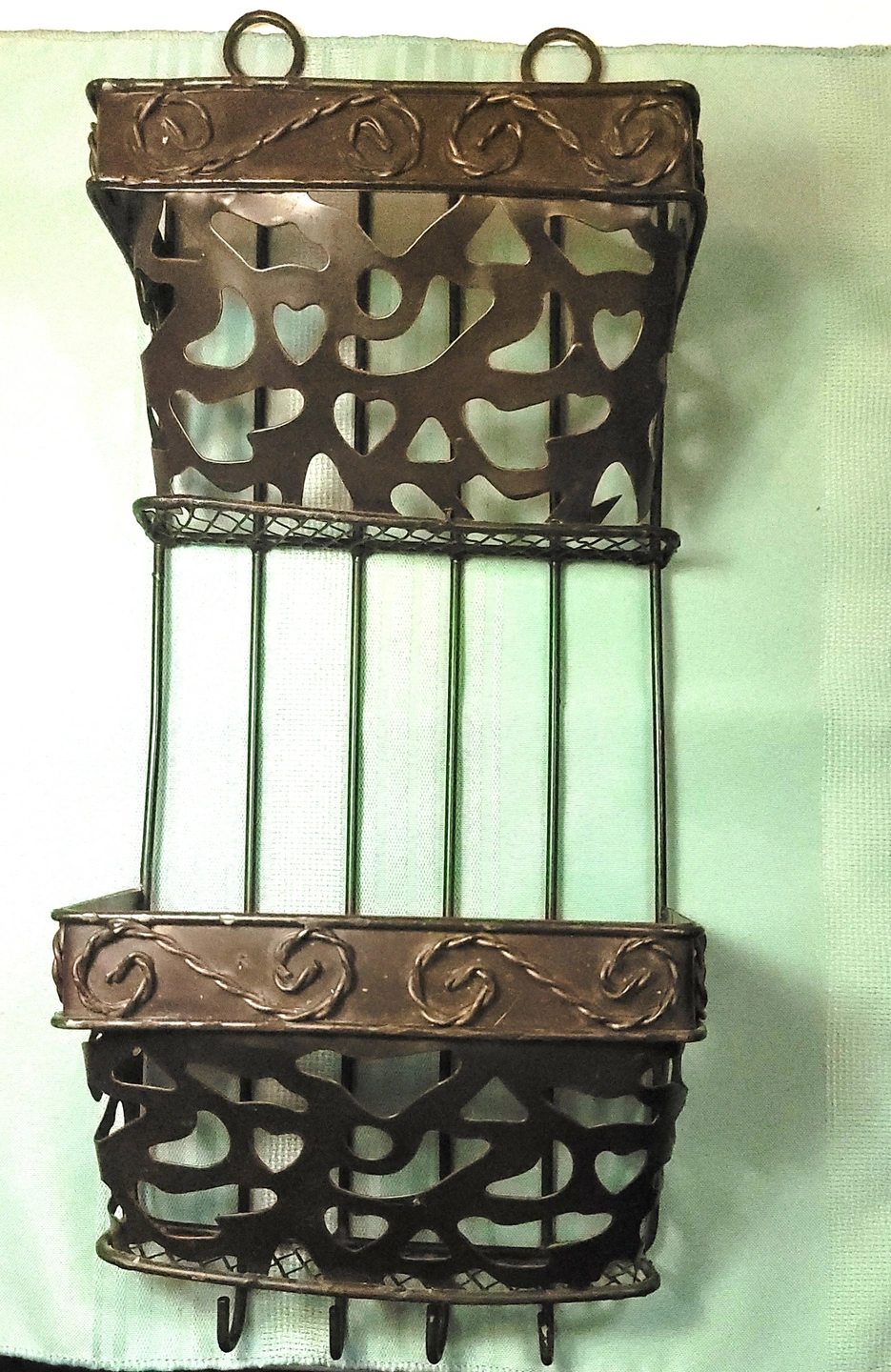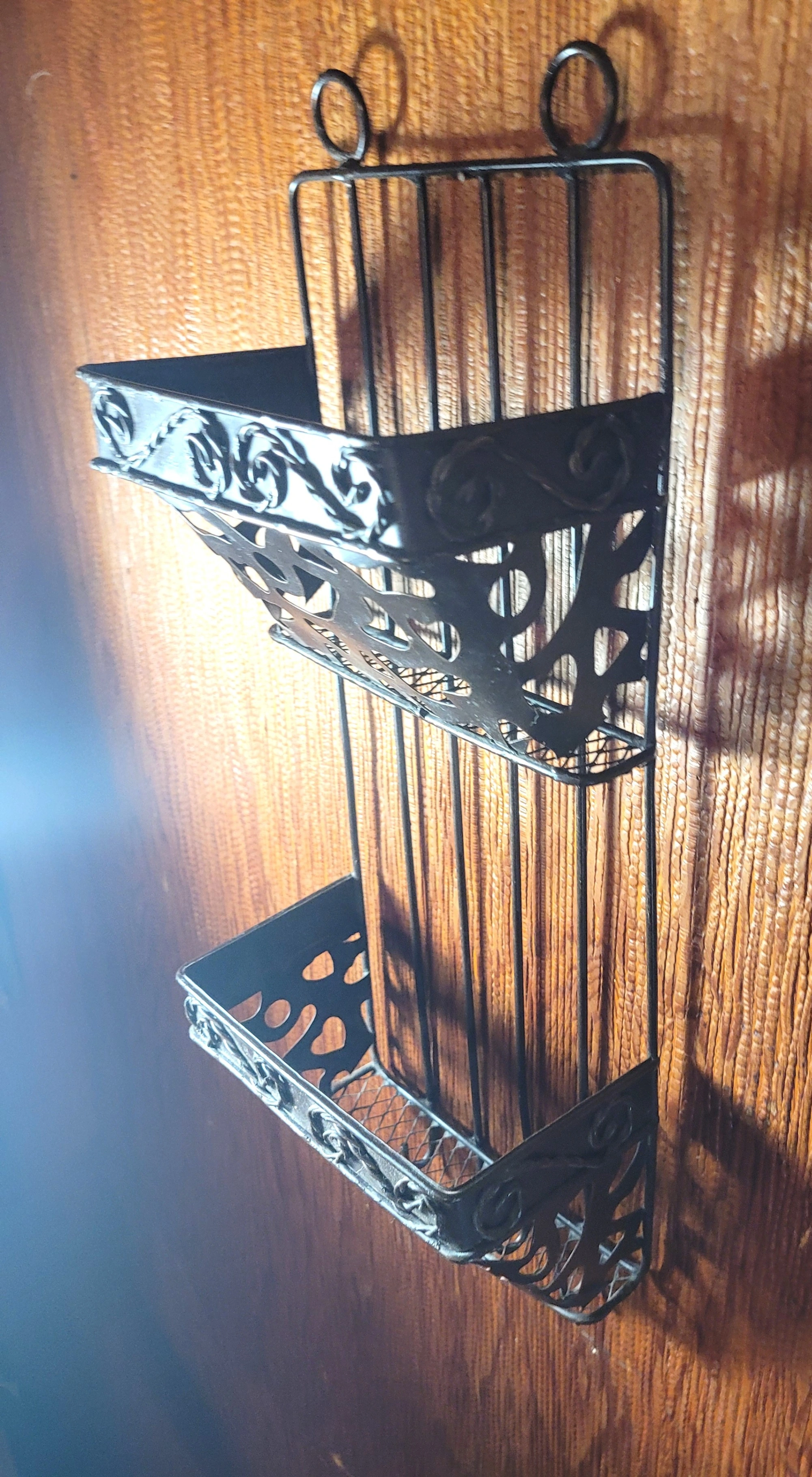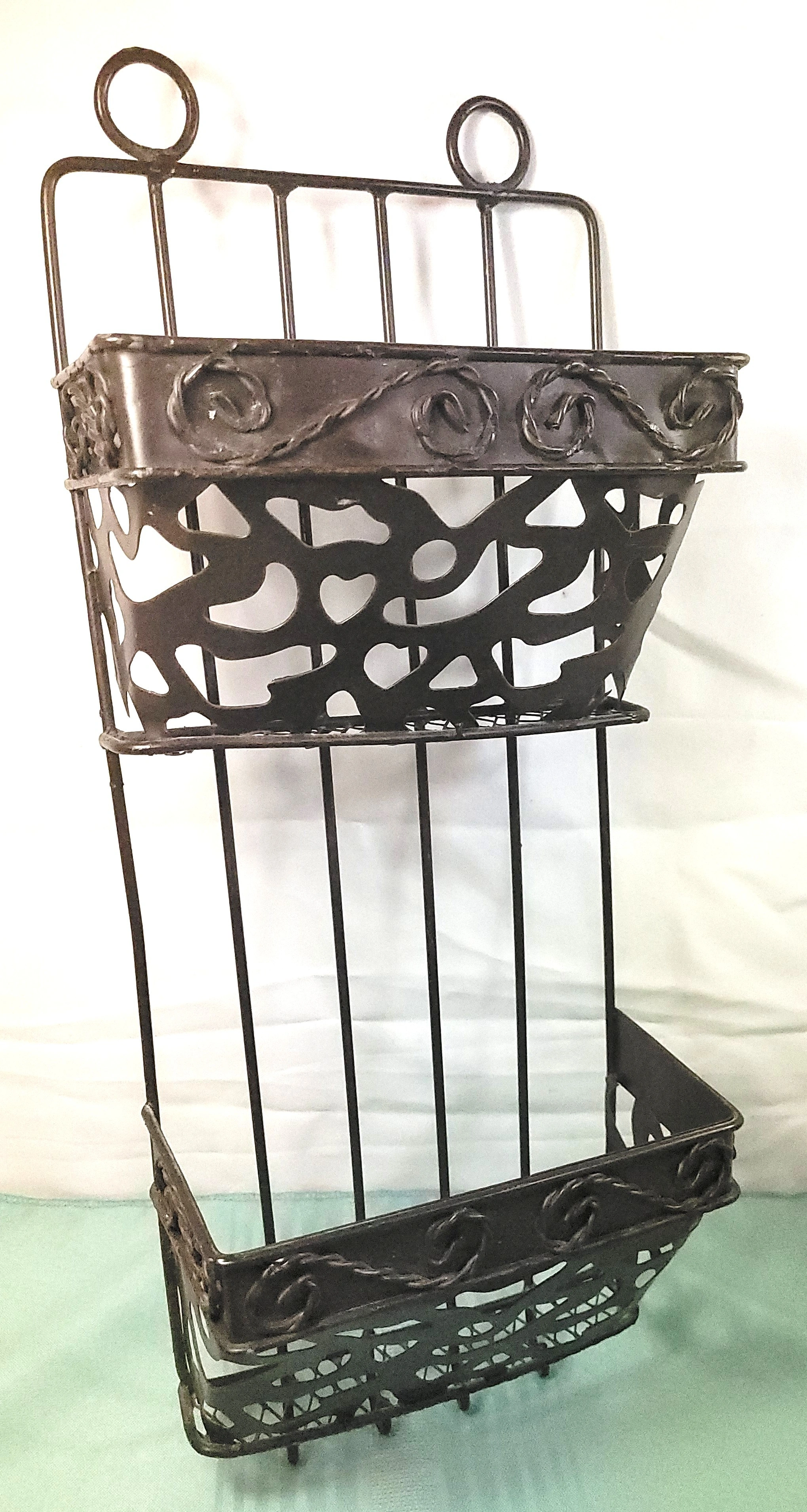 Authentic Vintage Design: Elevate your entryway or home office with this original 1970s-era wrought iron mail sorter. This piece features a classic Spanish-style scrollwork (filigree) design that fits perfectly with Farmhouse, Gothic, or Rustic decor styles. It is a heavy, durable piece designed for both function and aesthetic appeal.
