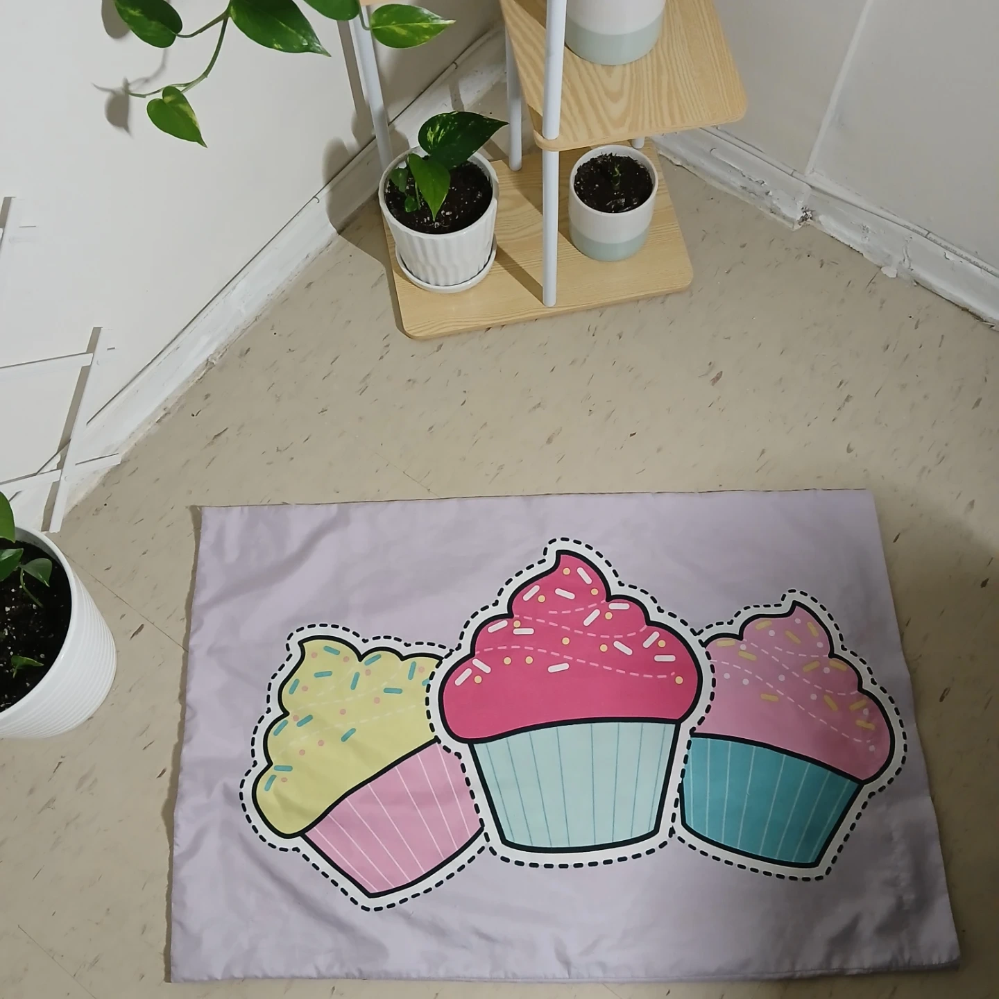 Twin size Cute Reversible cupcake design! It's perfect for adding a touch of whimsy to a childs room. The Comforter features colourful cupcakes and a soft, comfortable feel. Great for kids' rooms or anyone who loves a bit of fun decor.