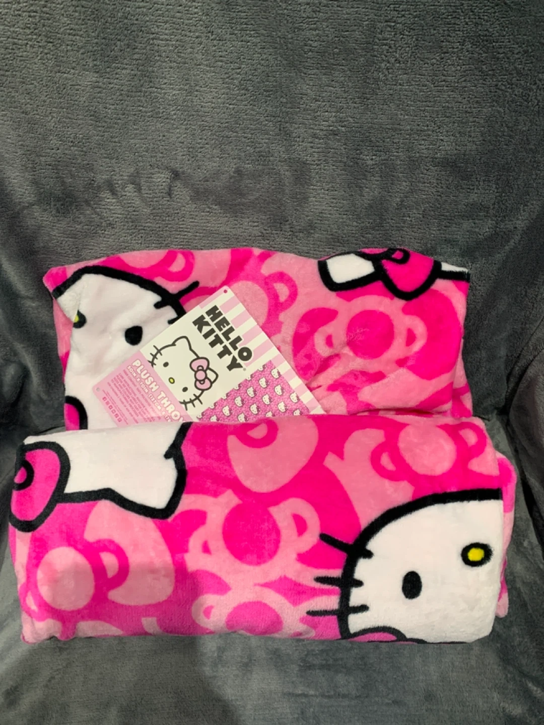 Snuggle up with this super cute Hello Kitty plush throw blanket! It's a vibrant pink and features the iconic Hello Kitty design. Perfect for adding a touch of kawaii to any room