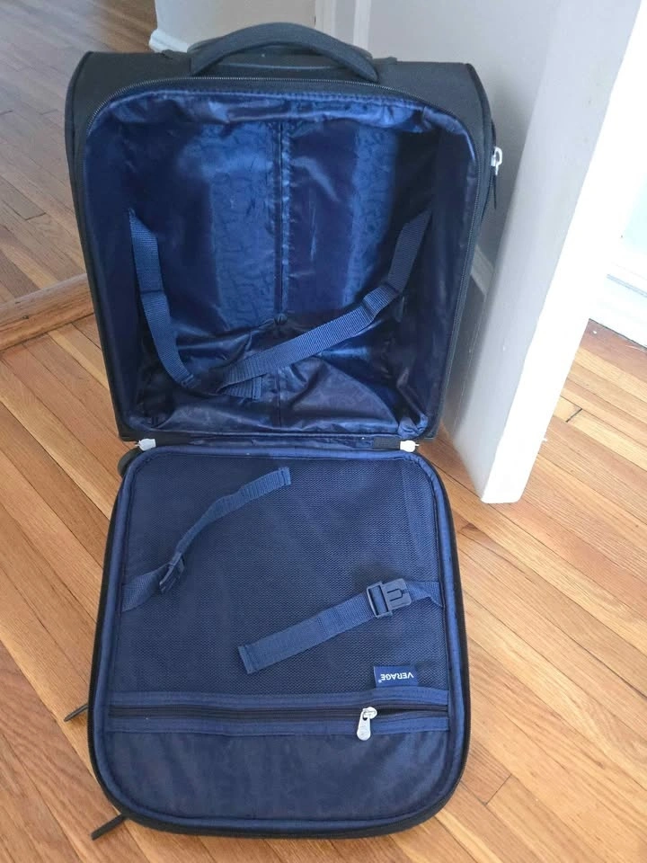 Compact underseat rolling luggage, used one time only and in excellent condition. Fits under most major US airline seats (American, Delta, Southwest, Spirit, Frontier).