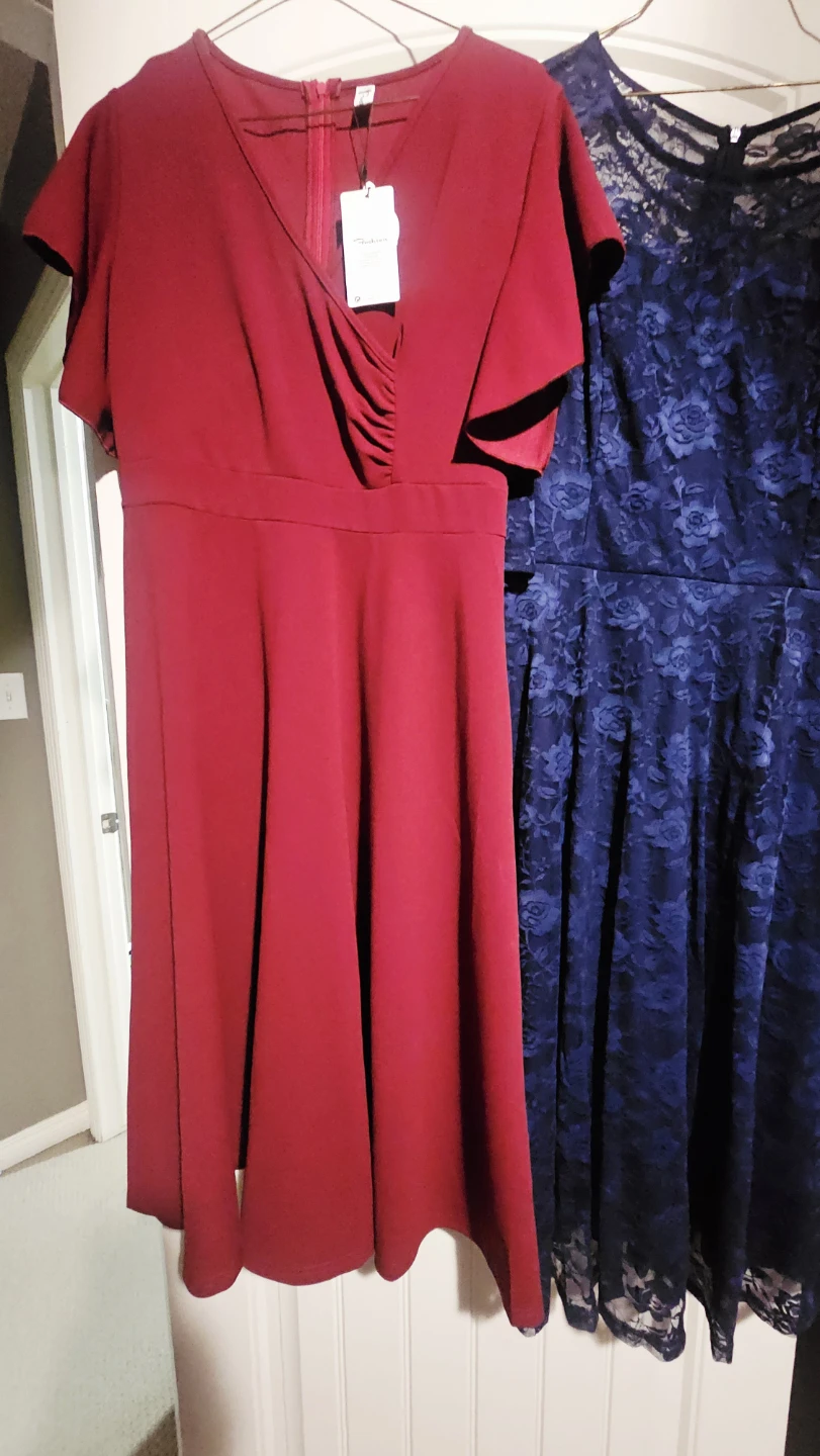 Fashionme dress in a beautiful red colour! It features a V-neck and short sleeves. $10.00 each