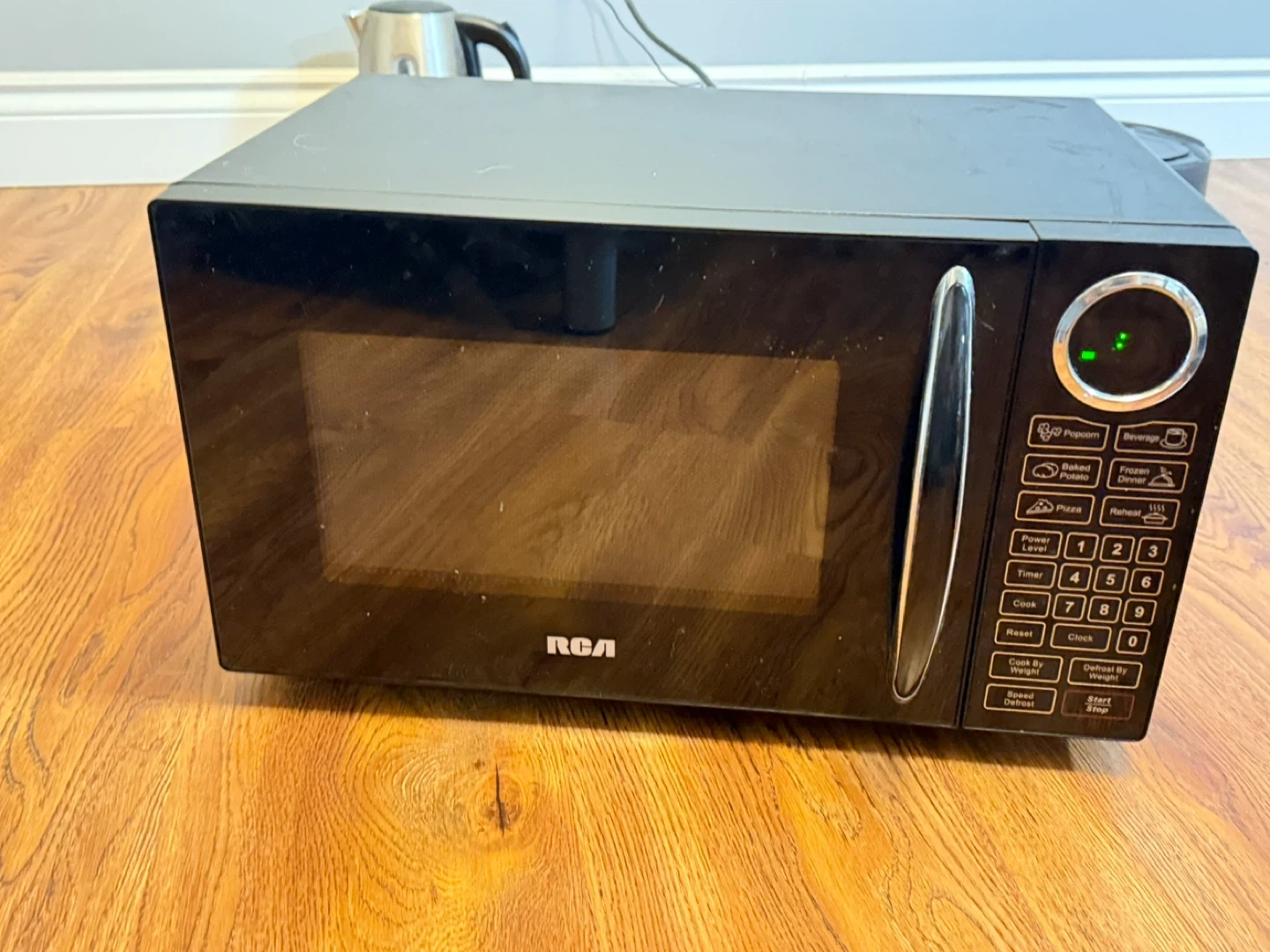 Selling a black RCA microwave oven. It's in good working condition and ready for a new kitchen! Perfect for quick meals and reheating leftovers