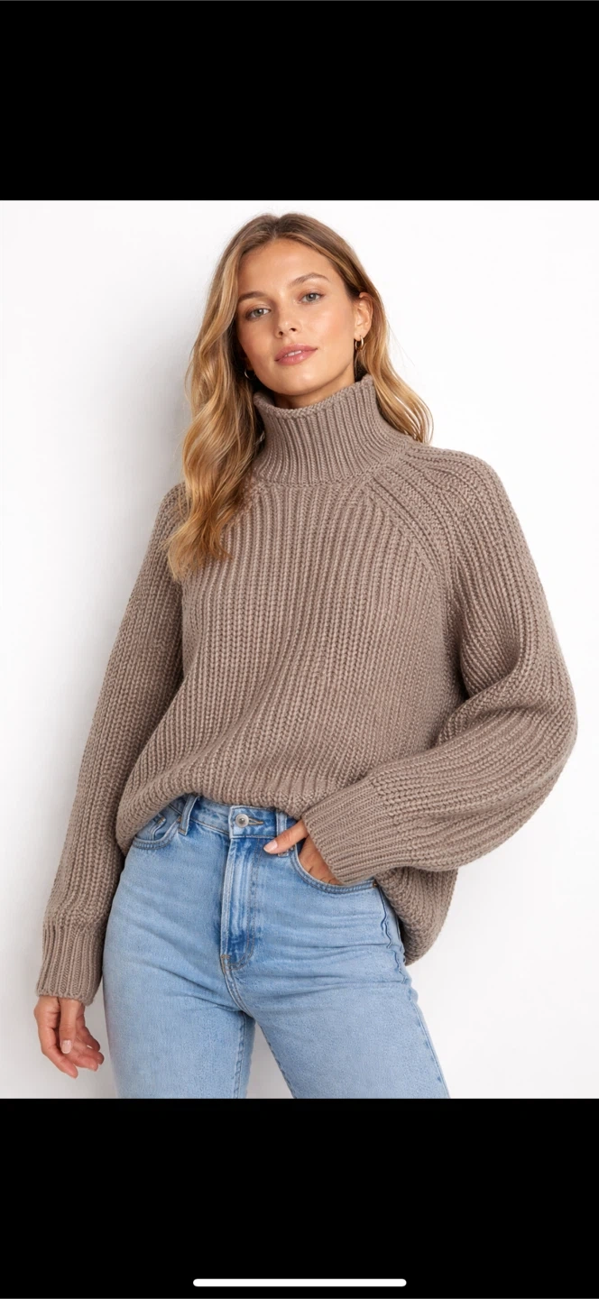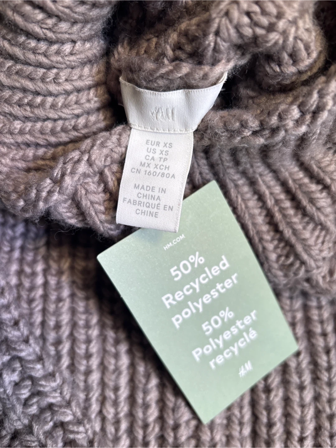 Cozy H&M knit turtleneck sweater! It's an XS and made of 50% recycled polyester. Great for layering on chilly days!