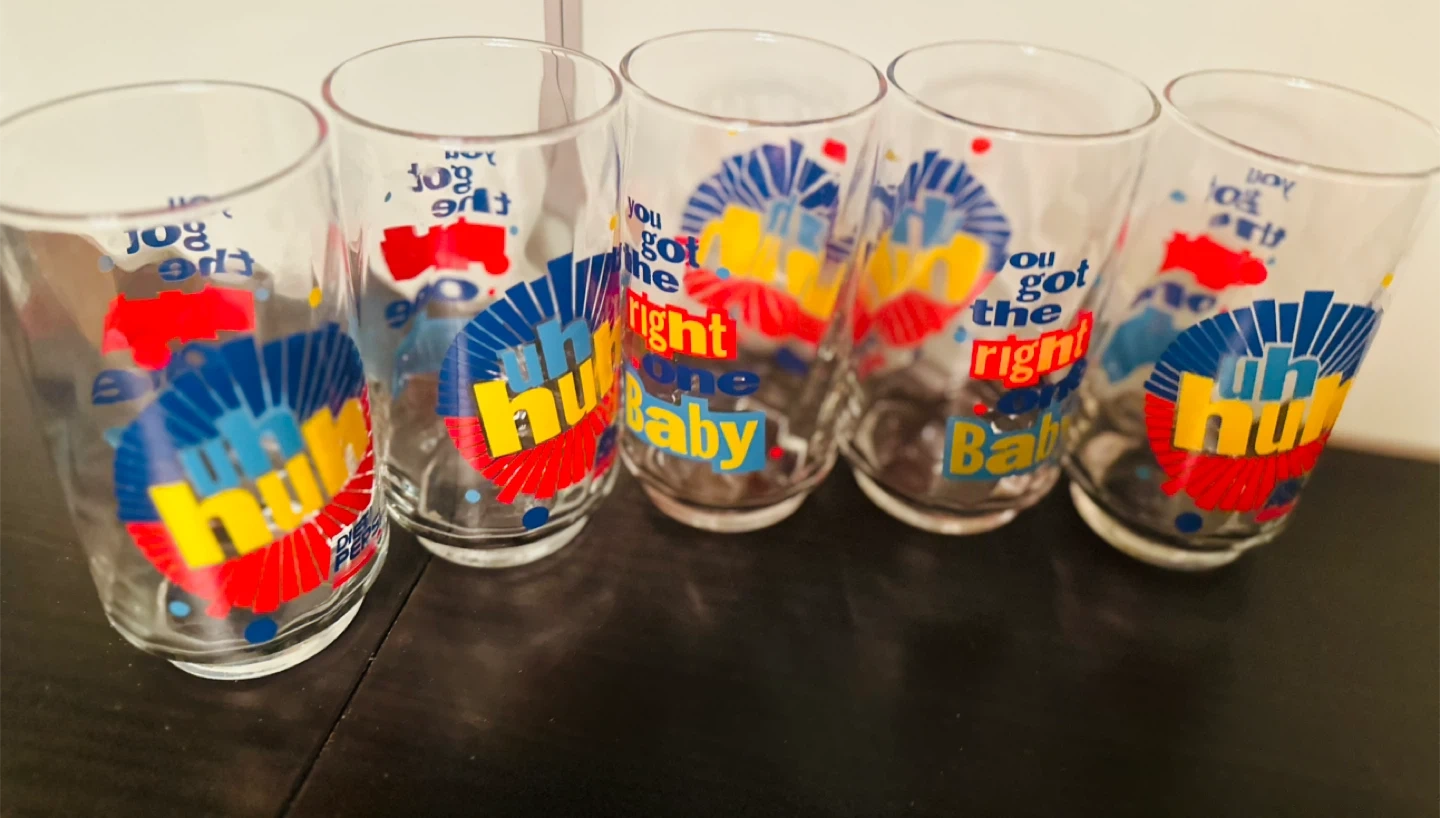 Selling a set of 5 vintage Diet Pepsi glasses featuring the "Uh Huh" design! They're in great shape and ready to add some retro flair to your kitchen or collection. Each glass is approximately 6.75 inches tall and 2.75 inches in diameter