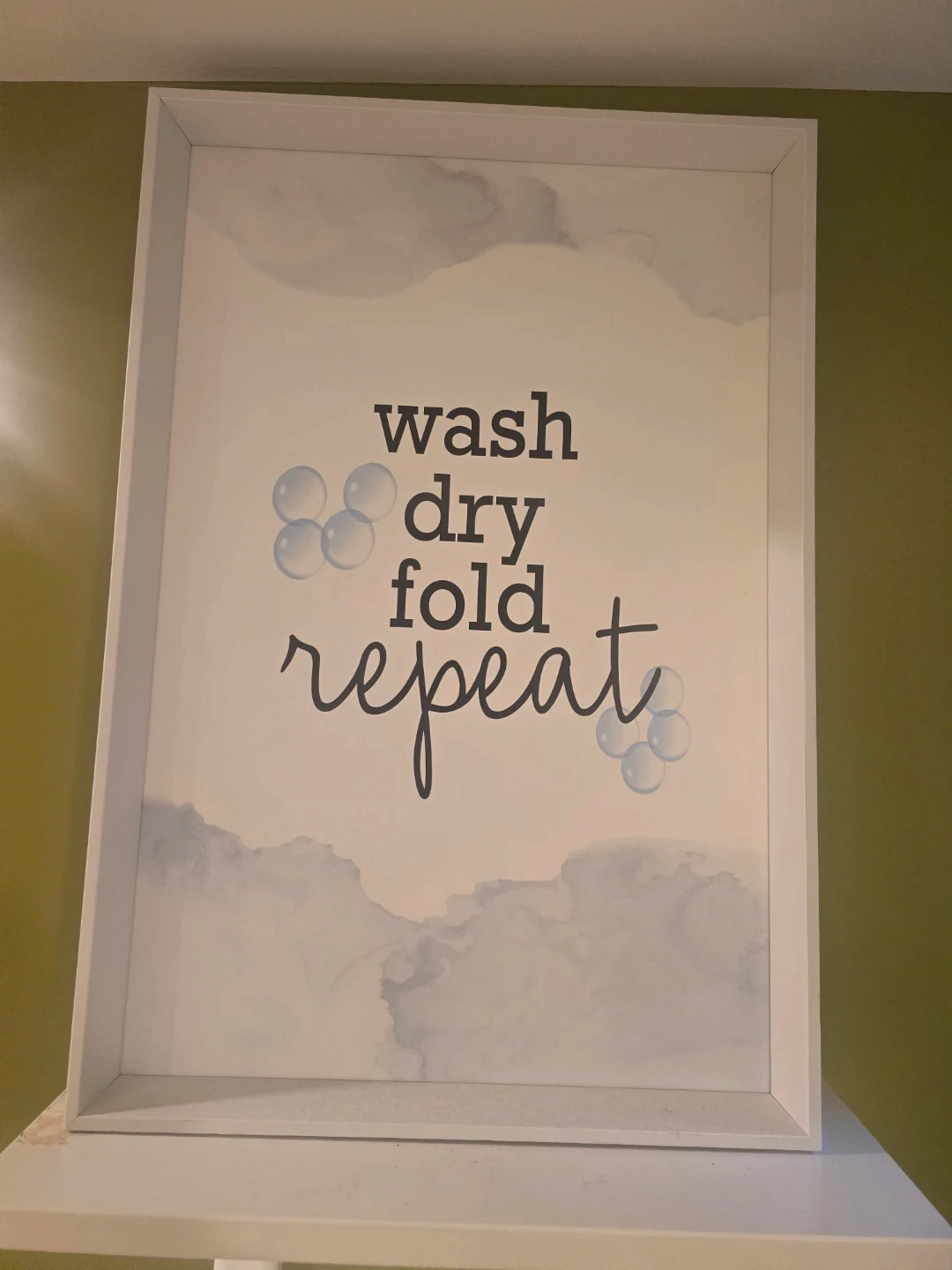 Add a touch of charm to your laundry room with this framed print! It features the phrase "wash dry fold repeat" in a stylish font, perfect for adding a bit of whimsy to your chore space
