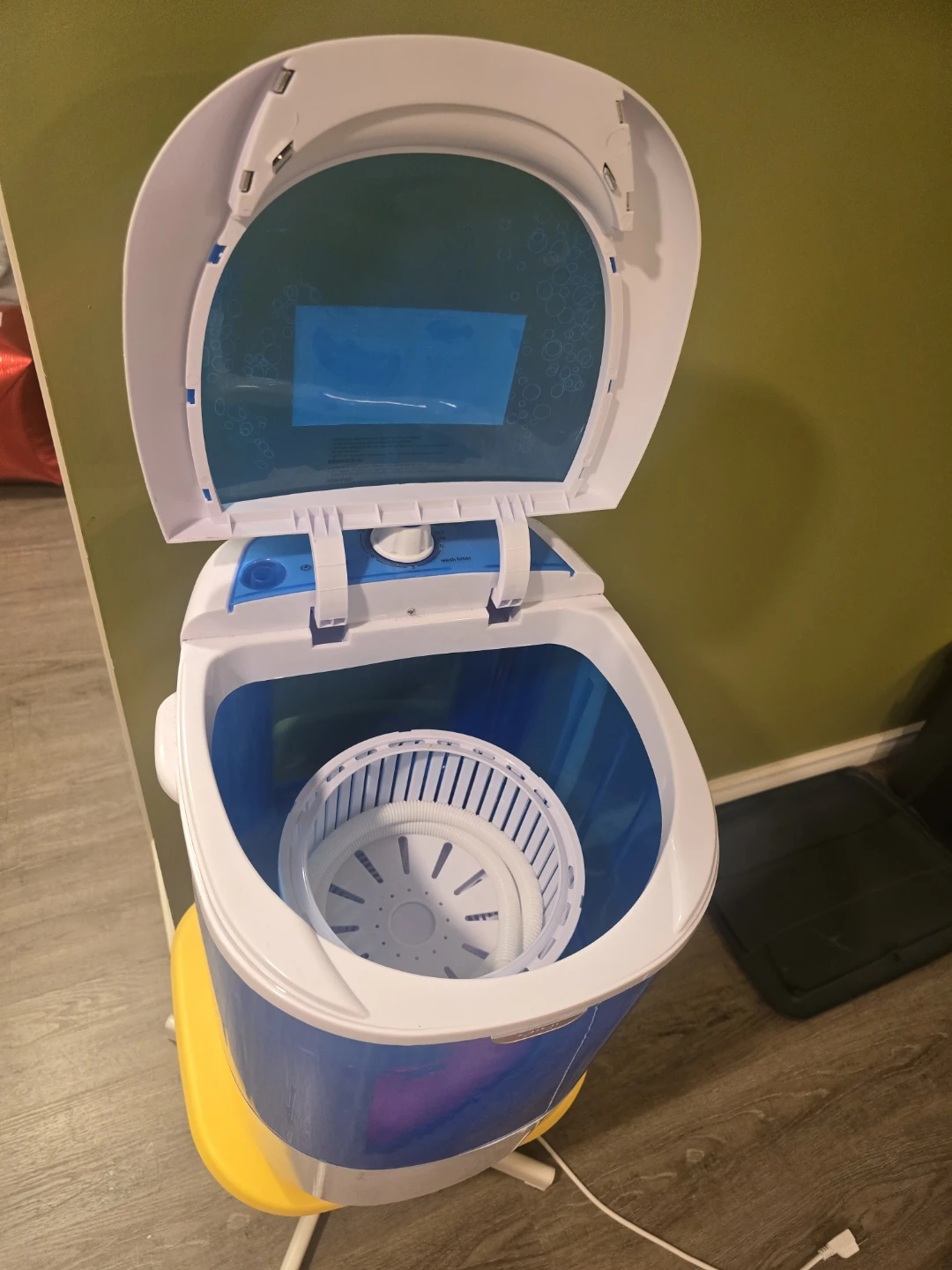 Selling a mini washing machine that's perfect for small loads! It's super compact and easy to move around.
