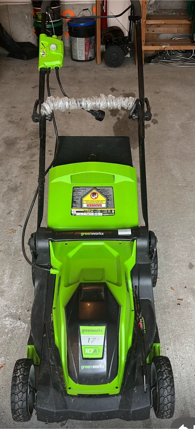 Selling a Greenworks 17-inch 10 Amp corded lawn mower. It's in great shape and ready to keep your lawn looking tidy! Features include a durable build and easy operation for a perfectly manicured lawn