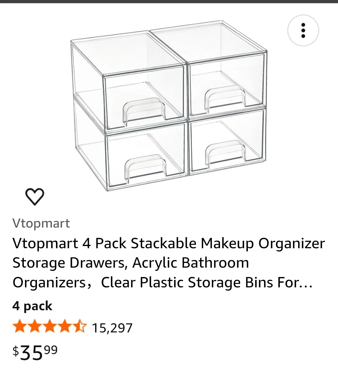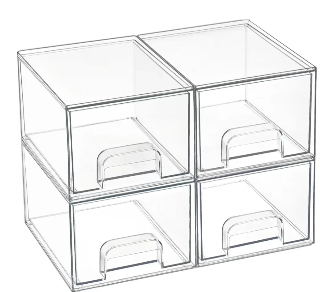 Keep your space neat and organized with these stackable clear plastic storage bins! These are great for makeup, bathroom items, or anything else you want to keep tidy. The drawers are made of acrylic and are easy to see what's inside. Originally bought for $35.99.
