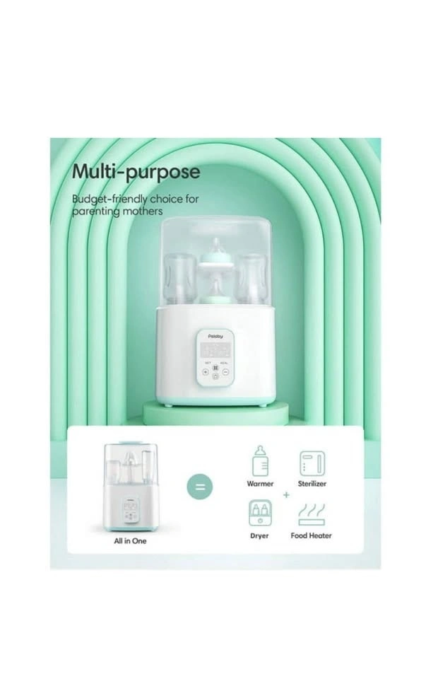 Pelaby All-in-one Baby Bottle Warmer Gives Mom What She Really Wants Keep Bottles Dry and Germ-free Pelaby sterilizer is tested to with high-temperature steam. Its powerful drying function can further keep it away from second pollution. Constant-warming for 24 Hours Our baby bottle warmer can keep the milk or water at 99 for 24 hours. It allows you to warm the bottles ahead and make them ready for a baby on demand. Drying in a More Sanitary Way A HEPA filter is inserted in product's air intake. It can effectively block the impurity and dust in the air and make the whole drying process more cleanly. Easier to Clean and Maintain The water base is designed with a special coating which can prevent itself from rusting and collecting bacteria, so it's much easier and convenient to clean. Anti-scald and Safer to Use The handle on cover as well as the bottle clamp can help you easily and safely remove the bottles without risk of scalding your hands.