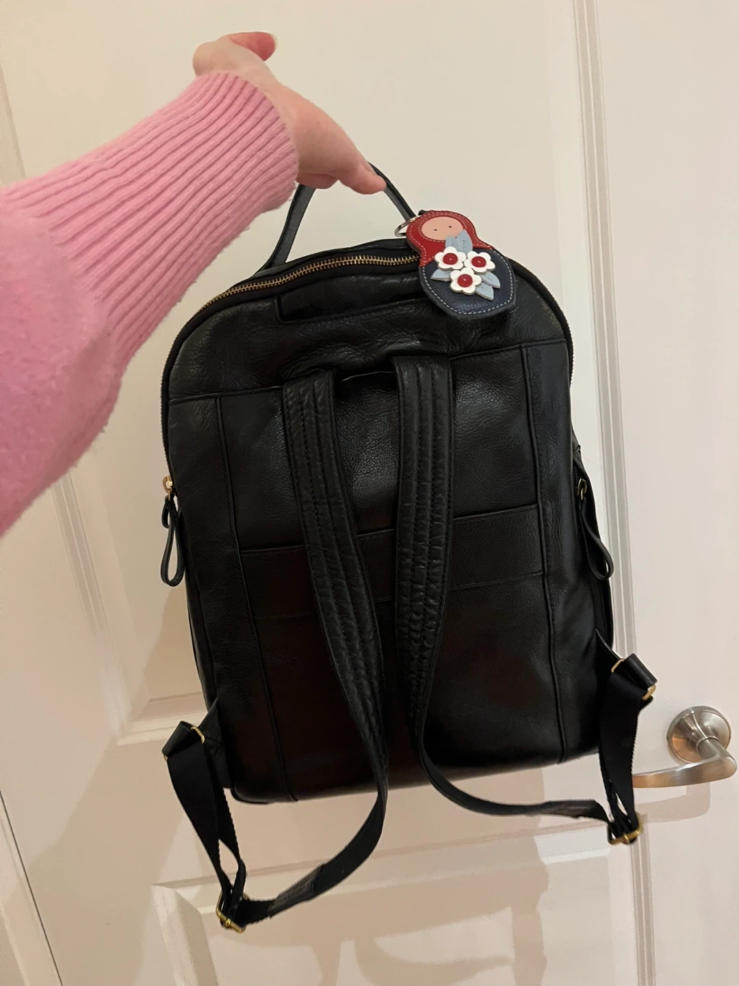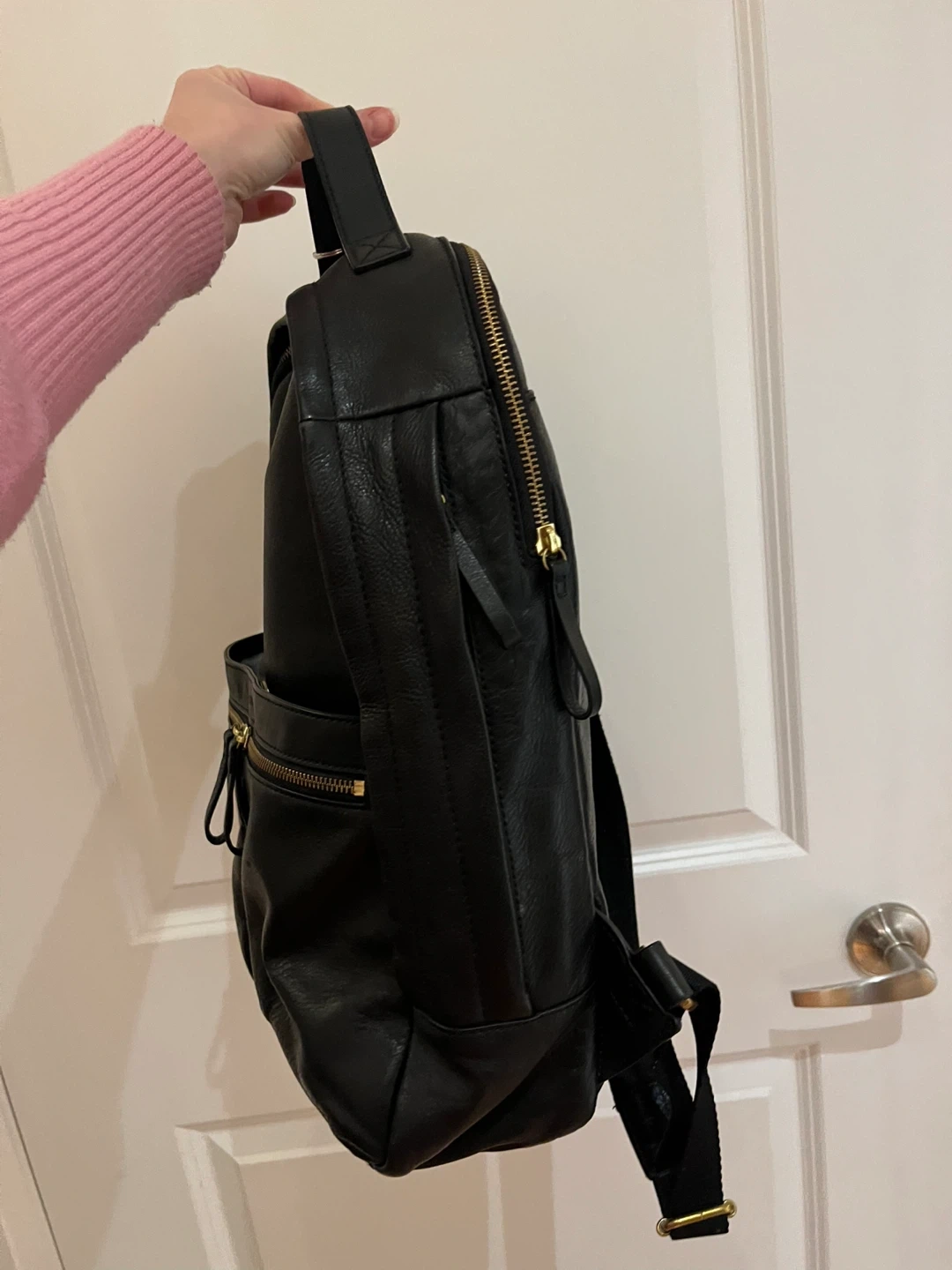 This is a really nice black leather Fossil backpack! It's in great condition and has lots of pockets inside. Perfect for school, work, or travel. Original price $280