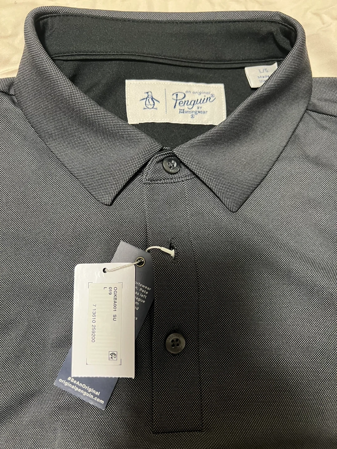 This is a brand new Penguin Oxfordon SU polo shirt in size large. It's a stylish addition to any wardrobe!