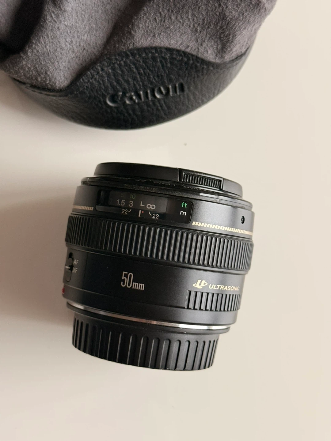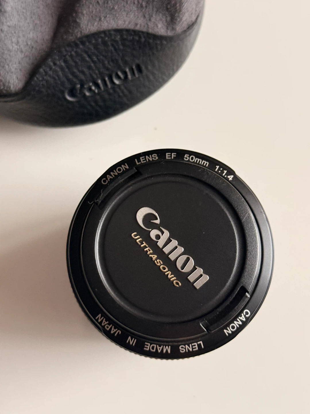 Selling a Canon EF 50mm f/1.4 lens. It's in new condition and ready for a new photographer! Includes Canon lens pouch. This lens is known for its excellent image quality and fast aperture, perfect for portraits and low-light photography. It’s one of the most popular lenses Canon has ever made.