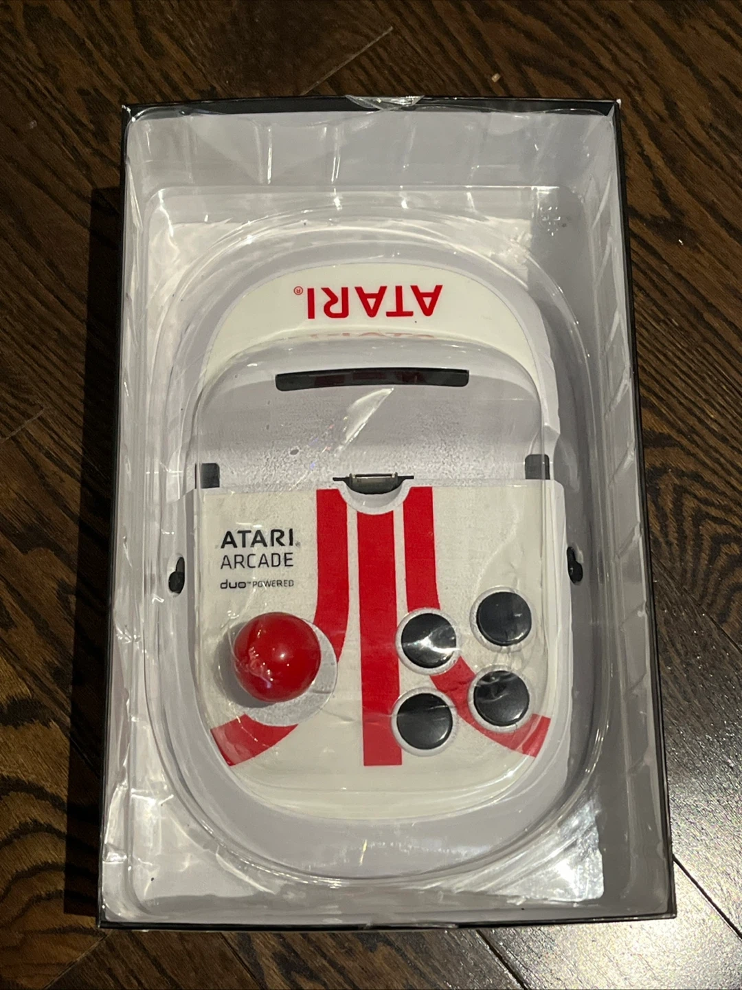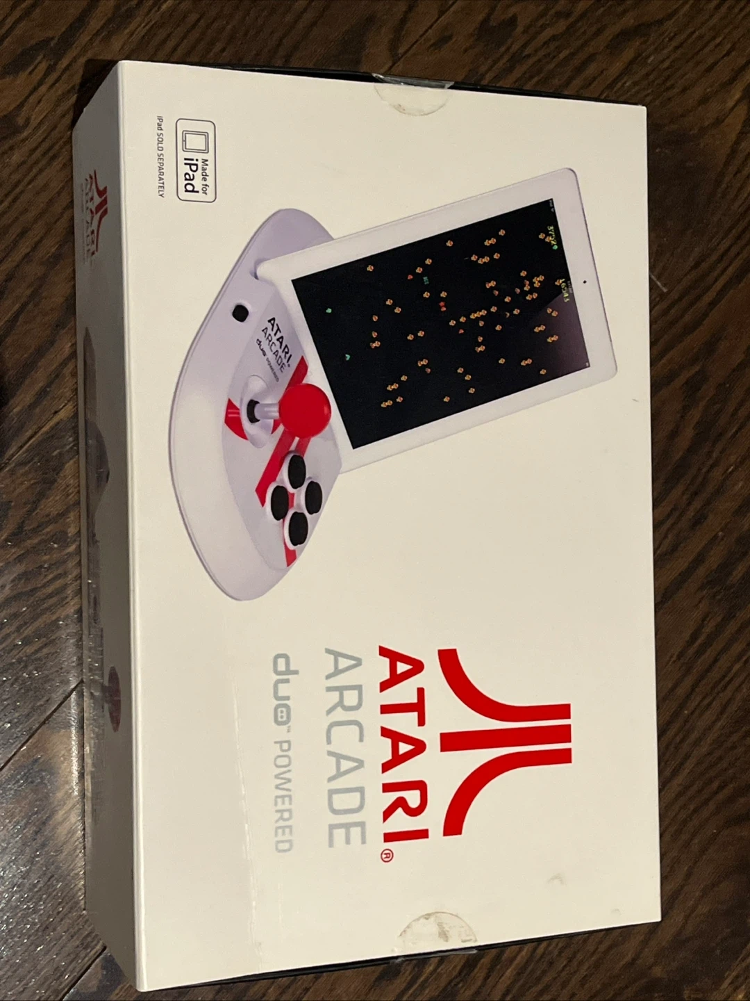 Looking to relive some classic Atari arcade action? This Atari Arcade Duo Powered controller brings the excitement of games like Asteroids and Centipede right to your iPad. It features a wireless joystick and buttons, perfect for sharing the fun with friends and family. Comes with the original box and instruction guide! Made for early 30-pin iPads