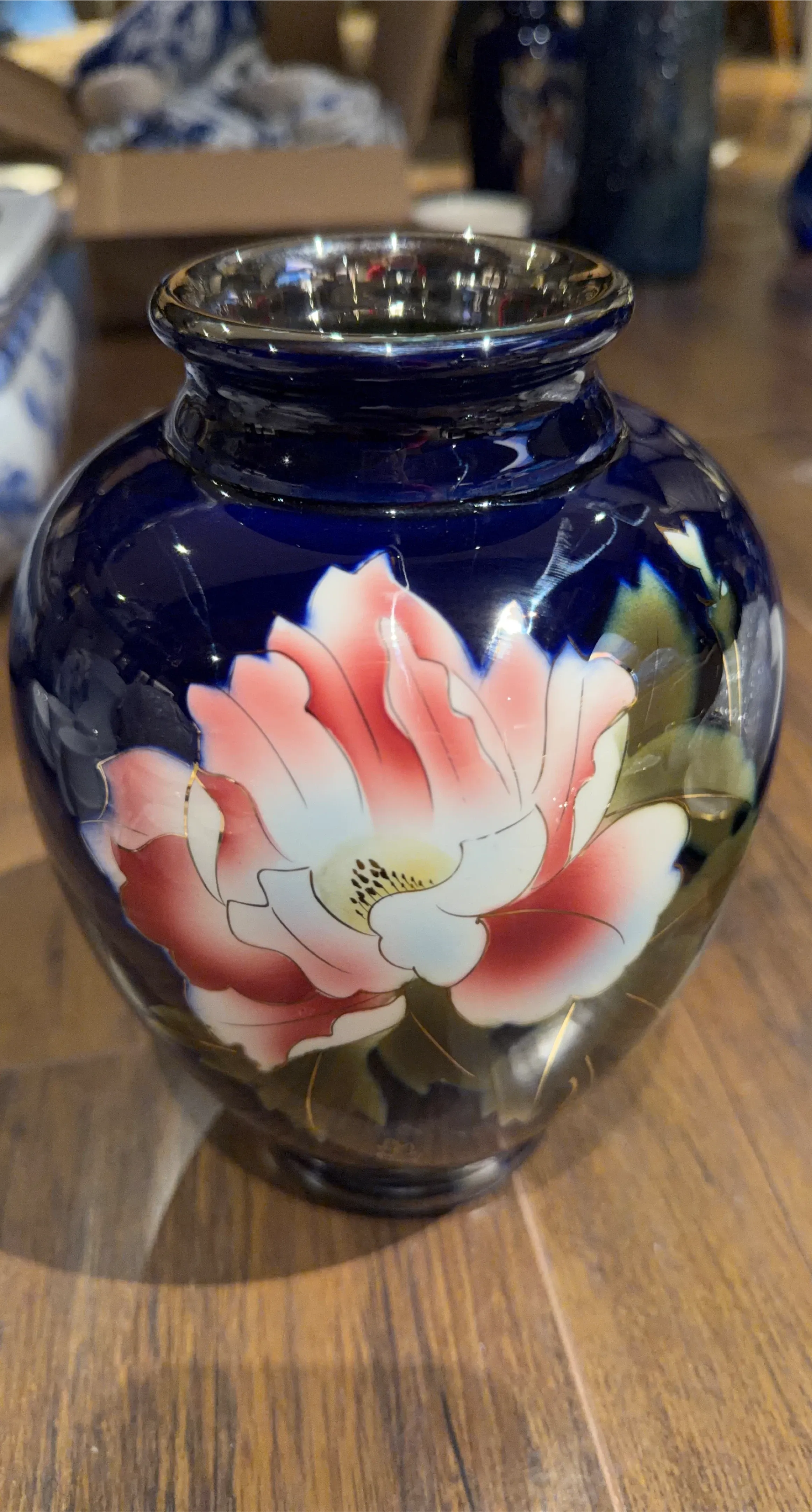 Buy & SellVintage Kokusui cobalt blue vaseVintage Kokusui cobalt blue vase$45Hand painted pink peony and green leaves porcelain design with high gloss finish. 8” tall by 5”WHERE TO MEETCheck LocationView MapSELLERSandraBolton181 review0 chats·0 favorites·3 viewsSEND CHAT TO SELLERHi Sandra! I’m interested in your listing.Hi Sandra! I’m interested in your listing.Get the Karrot app to chatSign In to chat