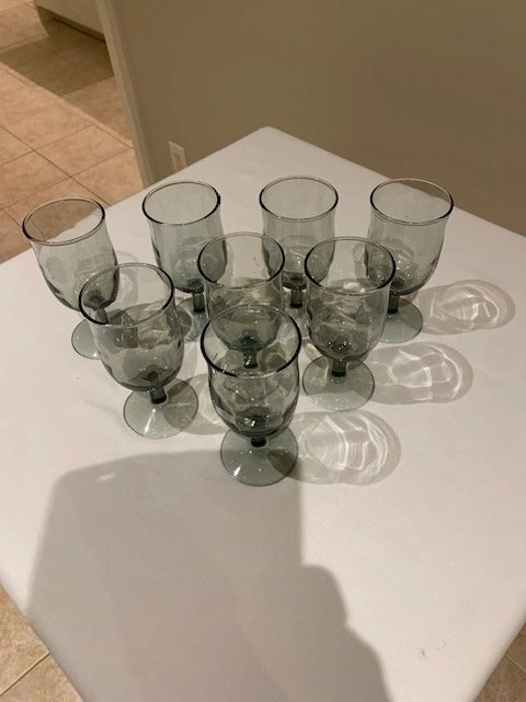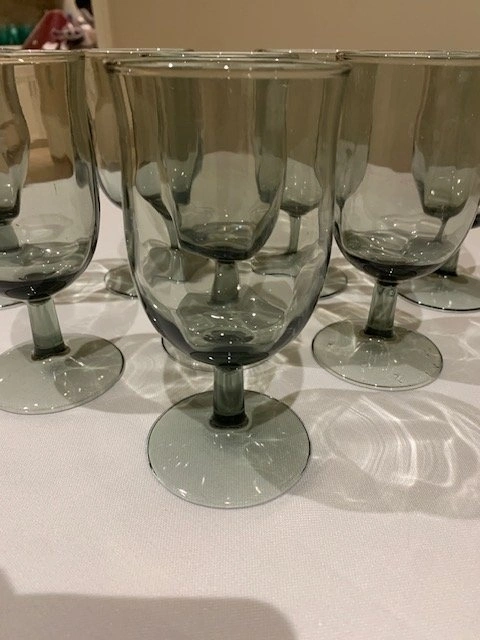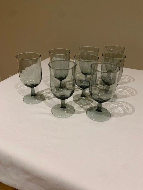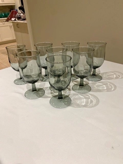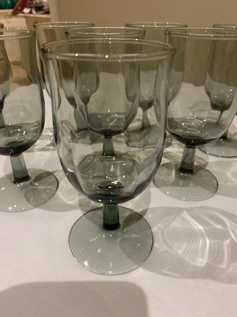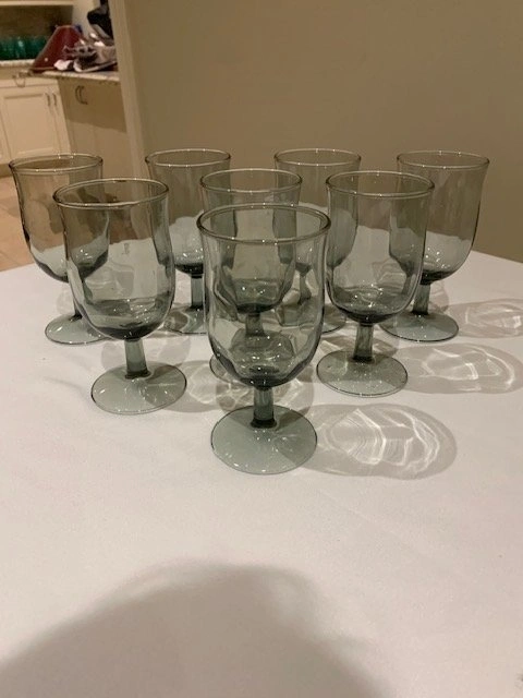 Glasses Libbey MCM Vintage Smokey Grey Set of (8) Stemmed Water