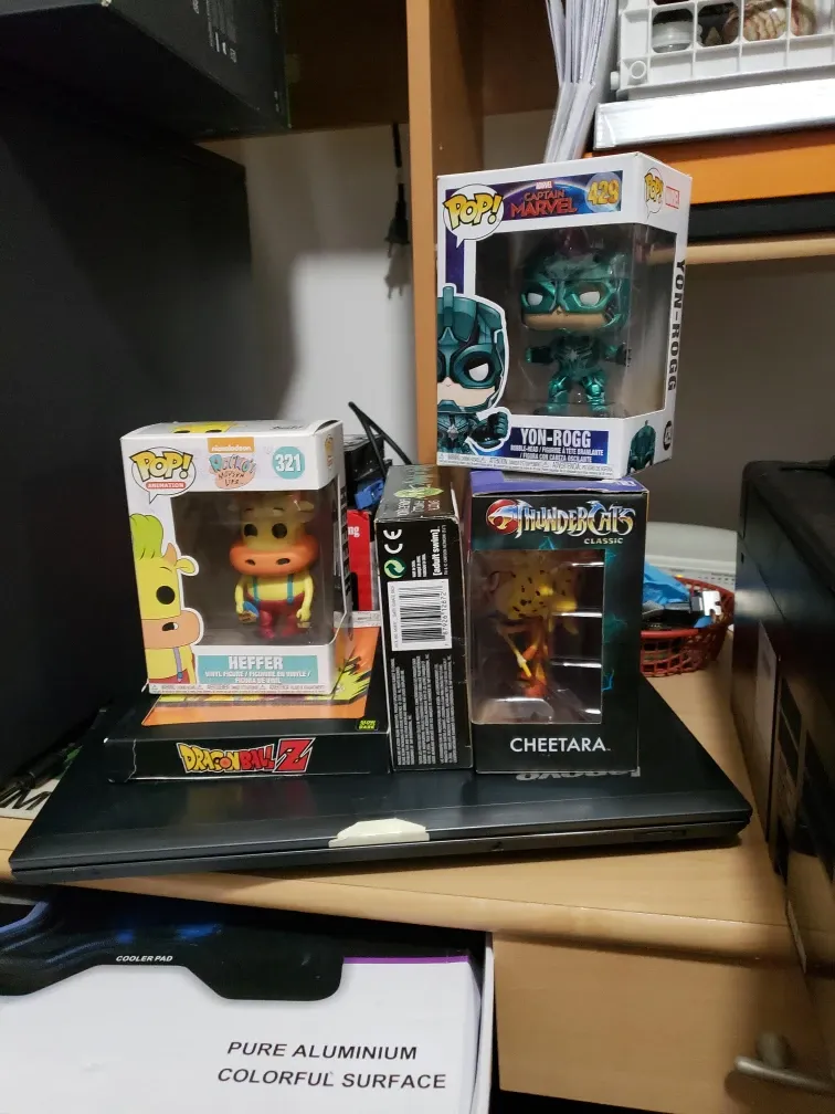 Selling a collection of Funko Pop! figures, including Heffer from Rocko's Modern Life, Yon-Rogg from Captain Marvel, and Cheetara from Thundercats. All figures are in their original boxes.