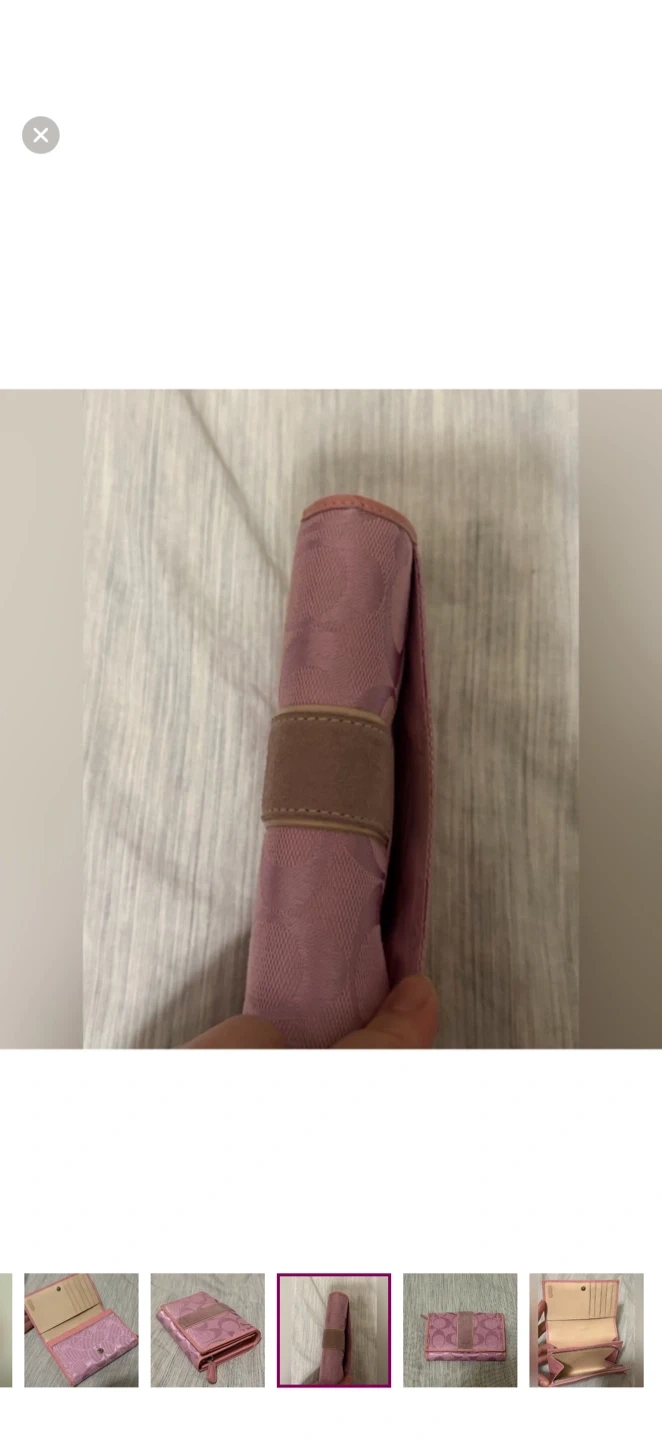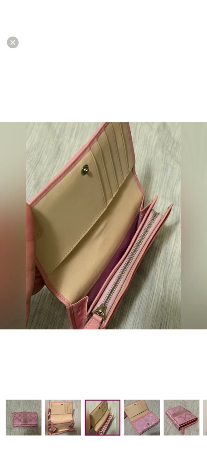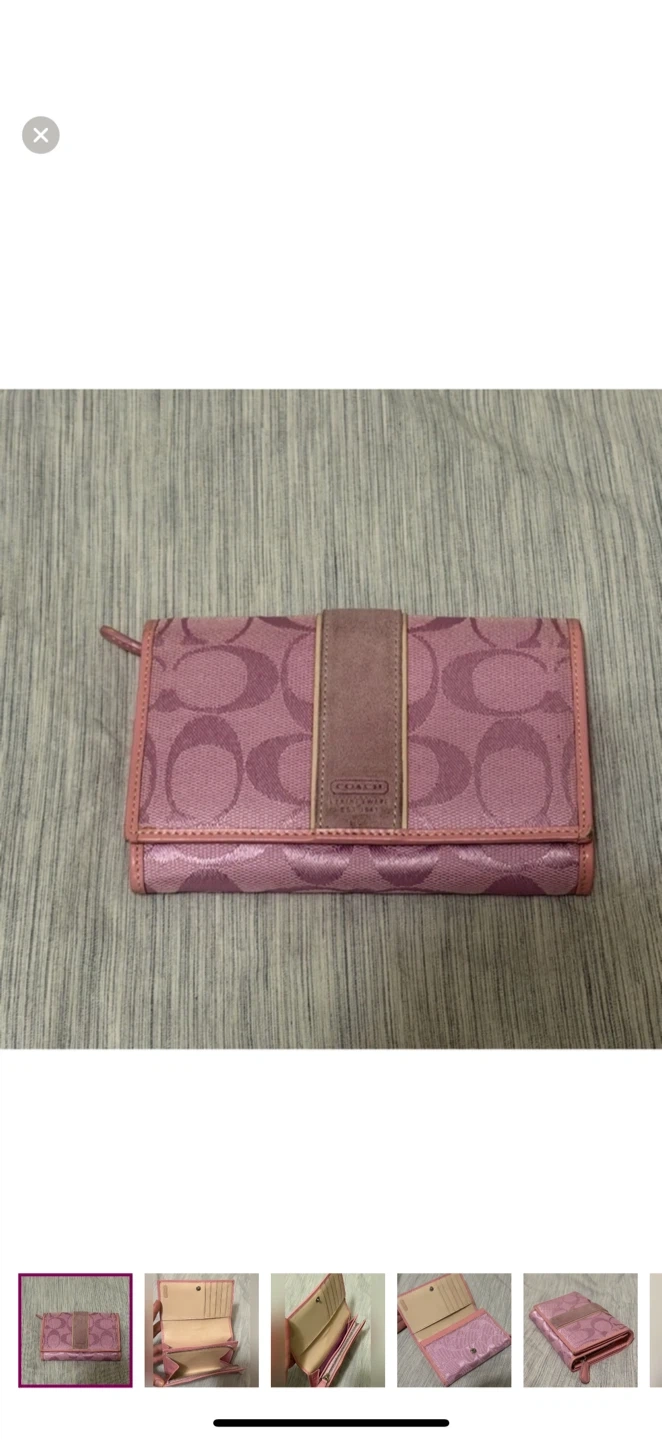 Selling a cute Coach wallet in pink-purple with the signature C pattern! It's in good condition and has a nice, compact design.