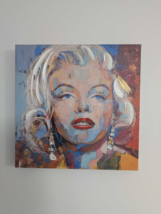 This striking Marilyn Monroe painting captures the iconic actress with vibrant colors and bold strokes. This is a used painting, and may have minor imperfections from handling. The painting is a unique piece of art that would add a touch of Hollywood glamour to any room. Unfortunately, specific details such as the artist's name, dimensions, and materials used are unavailable. Comparable art pieces are selling anywhere between $40-$150. If the ad is up, it's available! PICK UP ONLY. OPEN TO OFFERS.