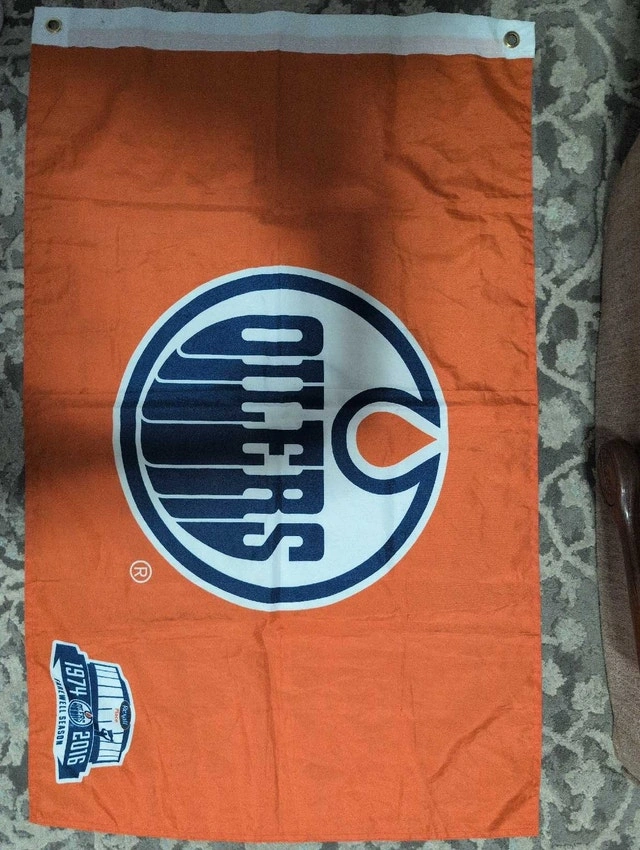 Show your team spirit with this Edmonton Oilers flag, perfect for any die-hard fan! This flag commemorates the Oilers' inaugural season from 1974 to 2016. It's a great piece to hang in your game room or bring to the rink to cheer on your favourite team. Flags are fun! If the ad is up, it's still available, so let's make a deal! Pick up only. I don't drive but can meet at WEM though.