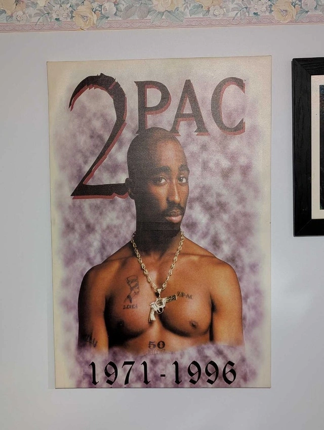 Adorn your wall with this striking 2Pac canvas print, a must-have for any true hip-hop aficionado. This item is used and shows a vibrant image of the legendary artist, commemorating his iconic status and legacy. The print captures 2Pac in his prime, making it a standout piece for any collection. This canvas print is a perfect conversation starter and a unique way to showcase your appreciation for one of music's most influential figures. Whether you're decking out your home studio or adding to your collection of memorabilia, this piece adds character and depth. Grab this print before it becomes a story of 'the one that got away'! Pick up only.