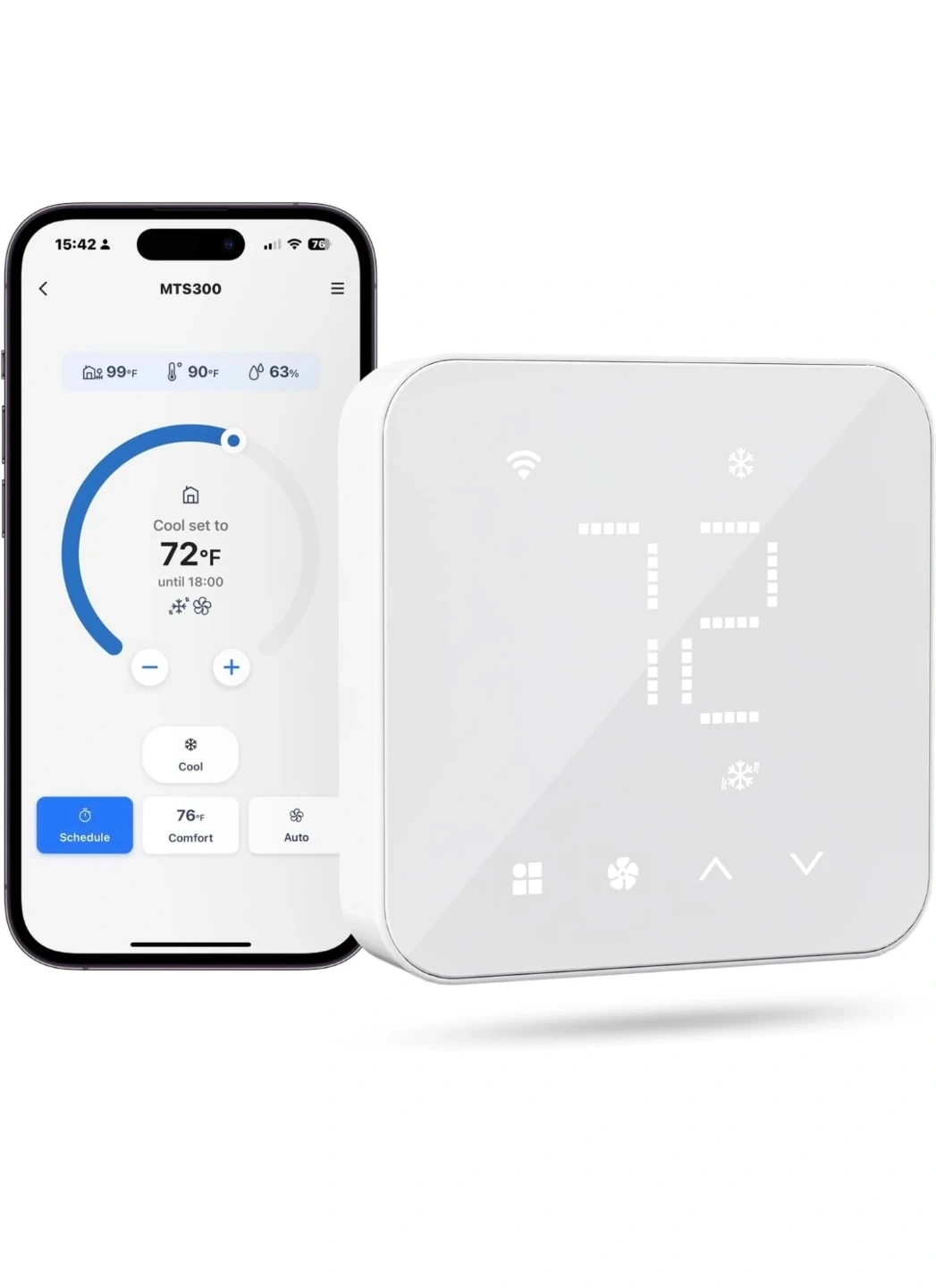 It allows you to customize your home's heating and cooling with a temperature schedule of up to 12 periods per day. The Meross app also lets you remotely control the thermostat when you're away from home. It's in new condition and comes with the box