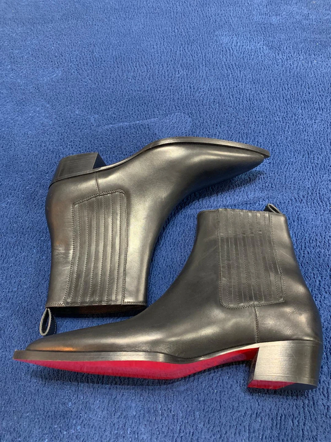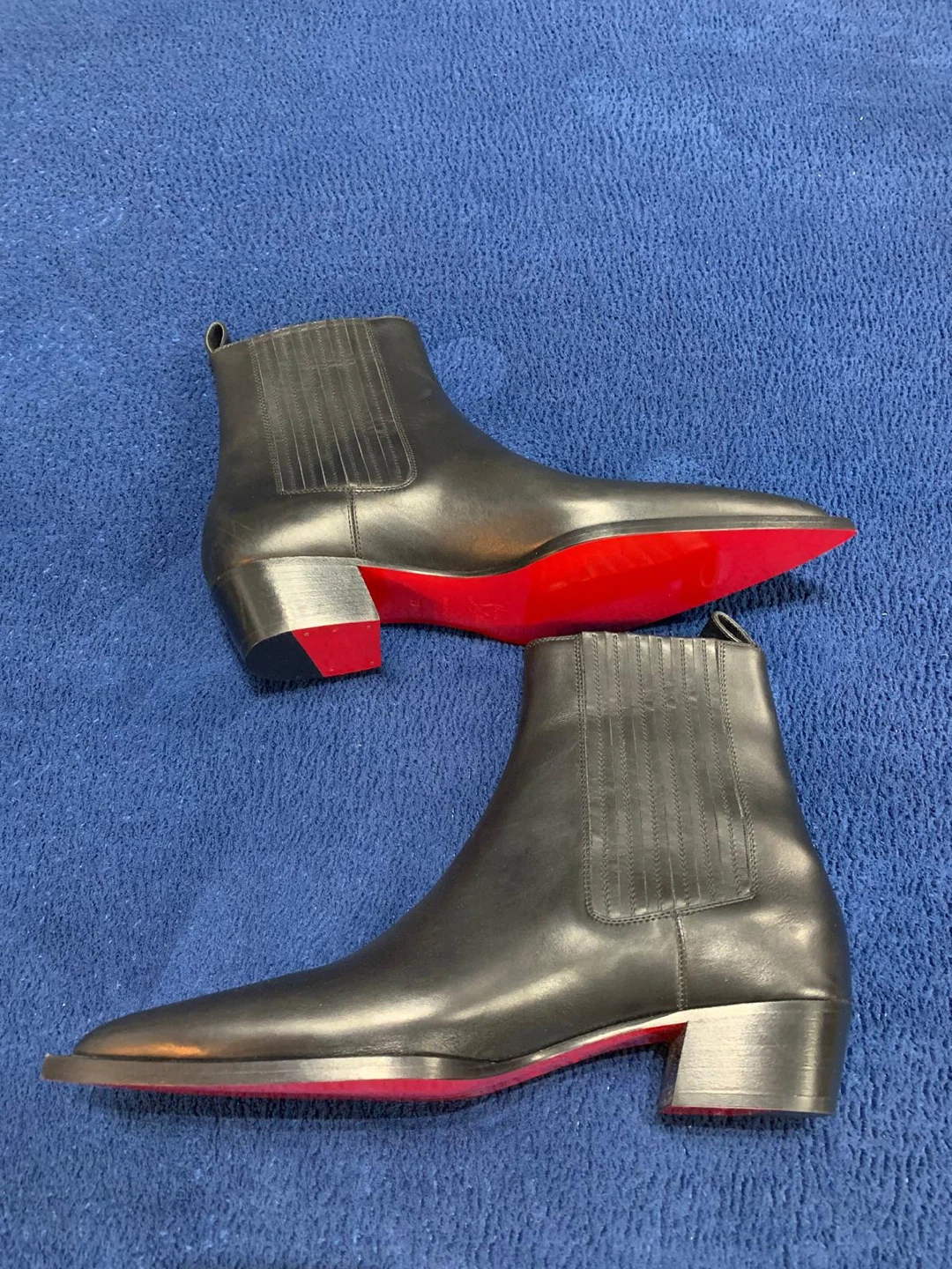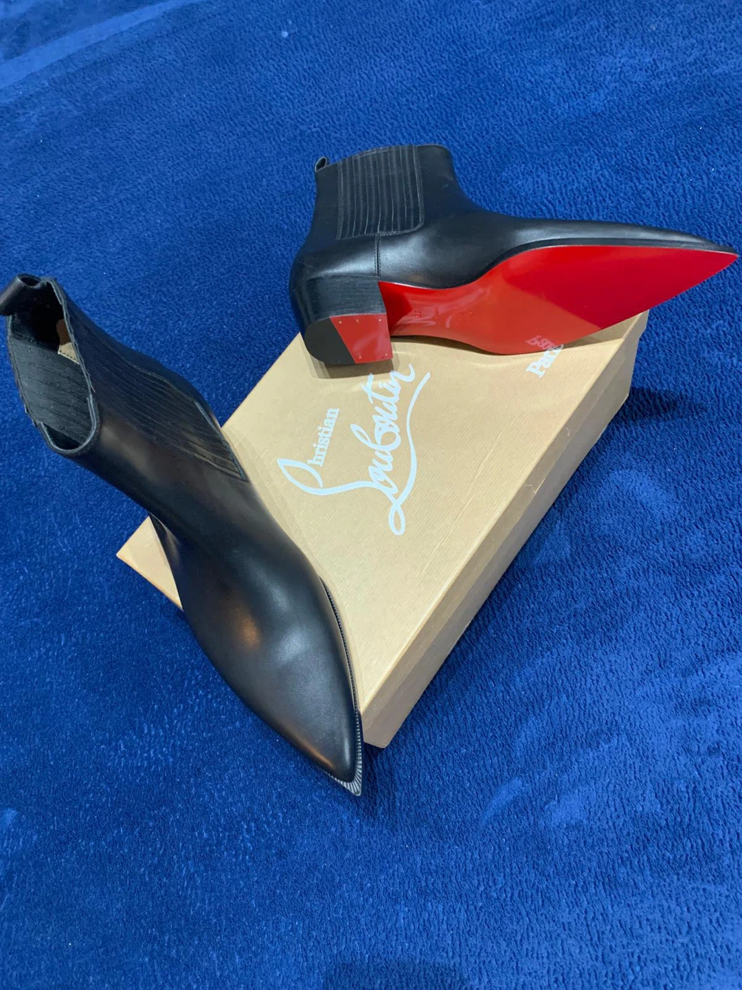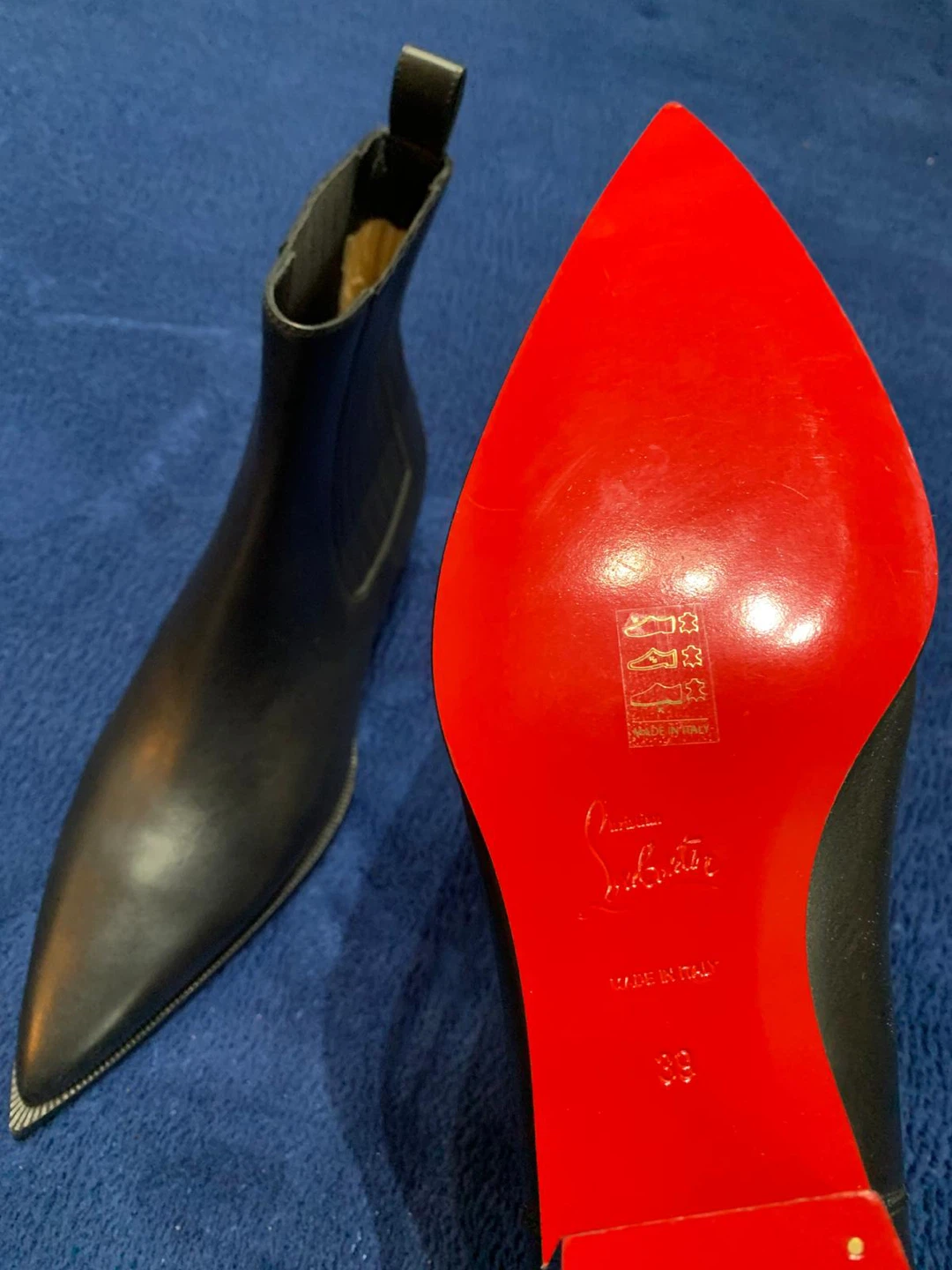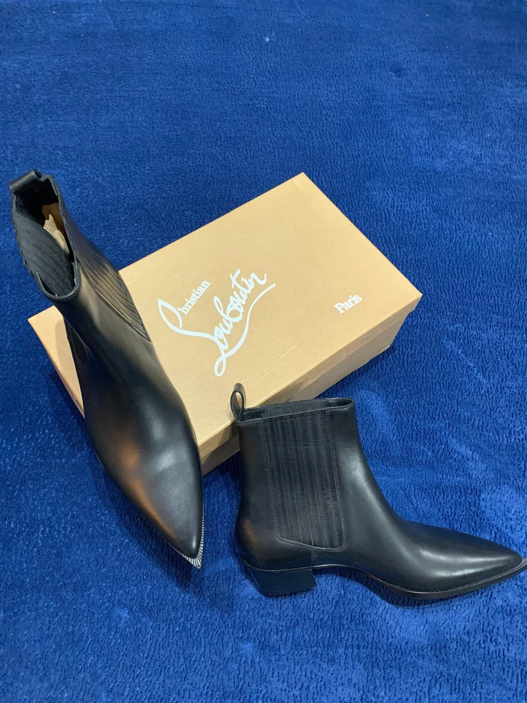 Here are a pair of authentic Christian Louboutin boots in size 39. They are black leather with the iconic red soles. The boots are brand new and ready for a new home. Originally over $1200 retail plus taxes.
