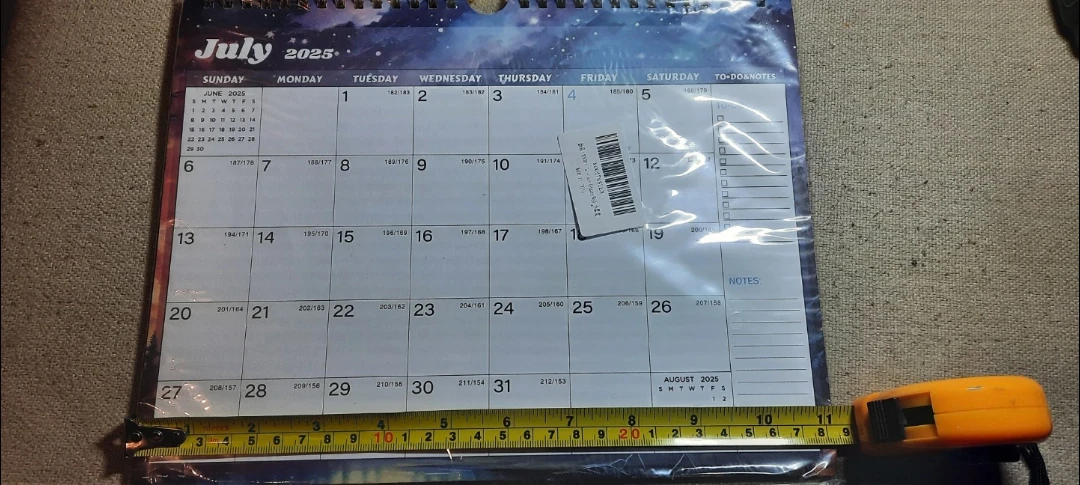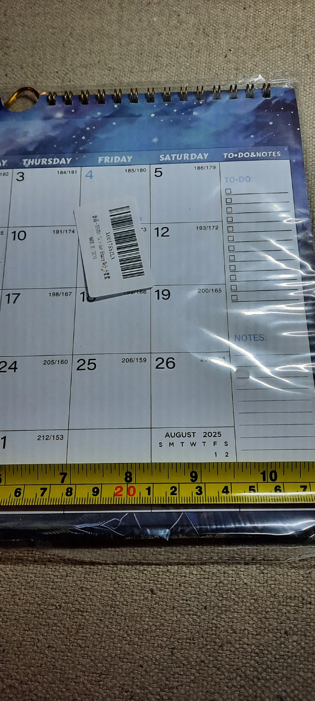 I have a 2025/2026 wall calendar still in its original packaging! It measures approximately 9 inches by 11 inches. Great for keeping track of important dates and appointments. Good until Dec 2026!