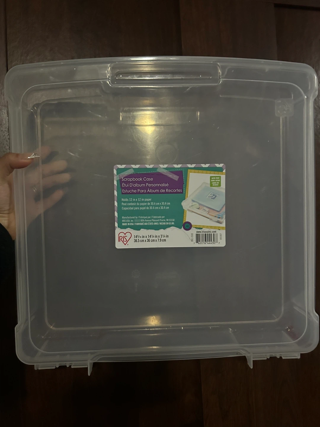 Selling an IRIS scrapbook case! It's perfect for storing your 12x12 inch paper and other crafting supplies. The dimensions are 14 5/16 in x 14 1/8 in x 3 1/8 in (36.5 cm x 36 cm x 7.9 cm)